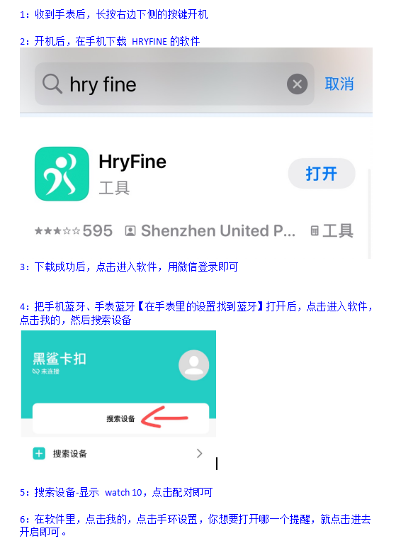 只要下载好软件 连接好手机后,蓝牙会自动连接手表,就可以任意测心率血压等。