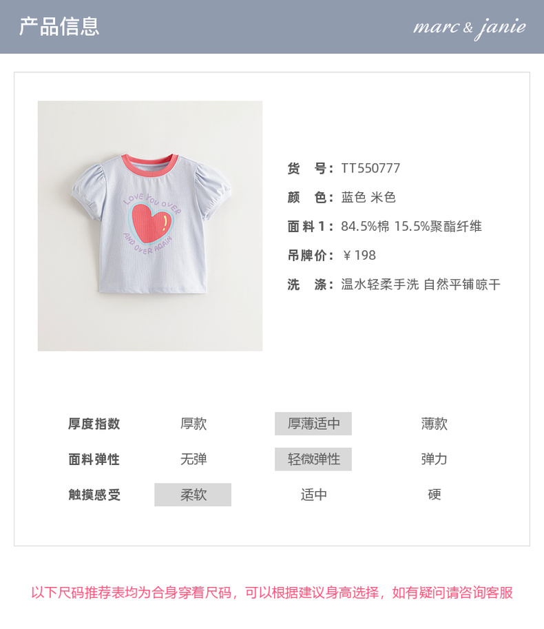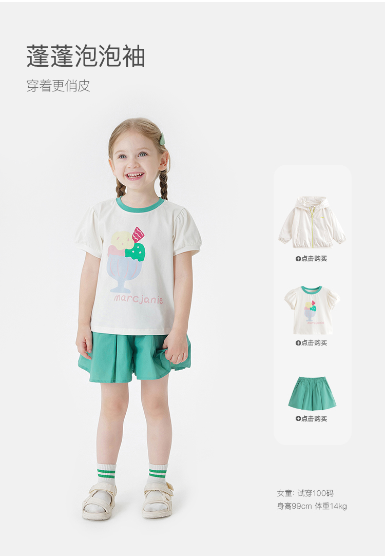 【凉感T】马克珍妮女童爱心雪糕短袖T恤 宝宝上衣夏装新款550777