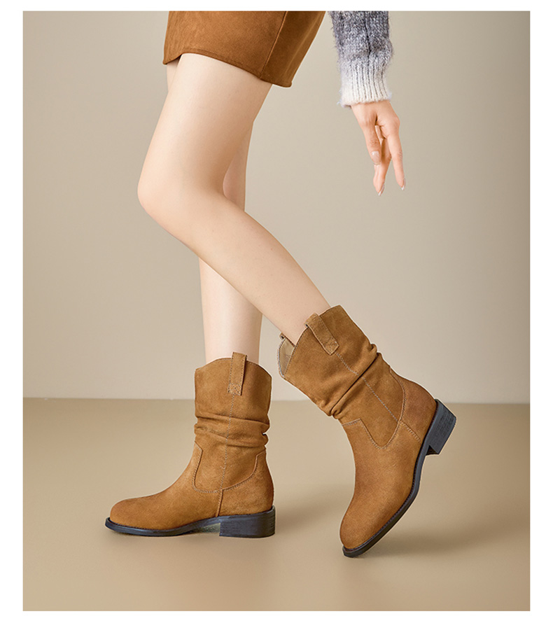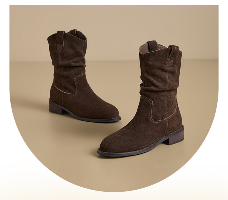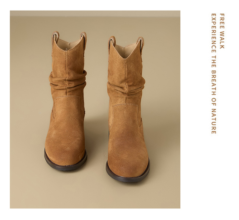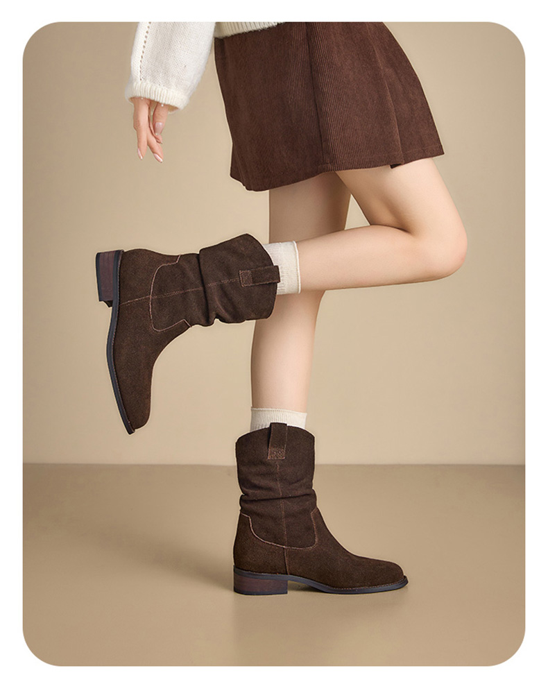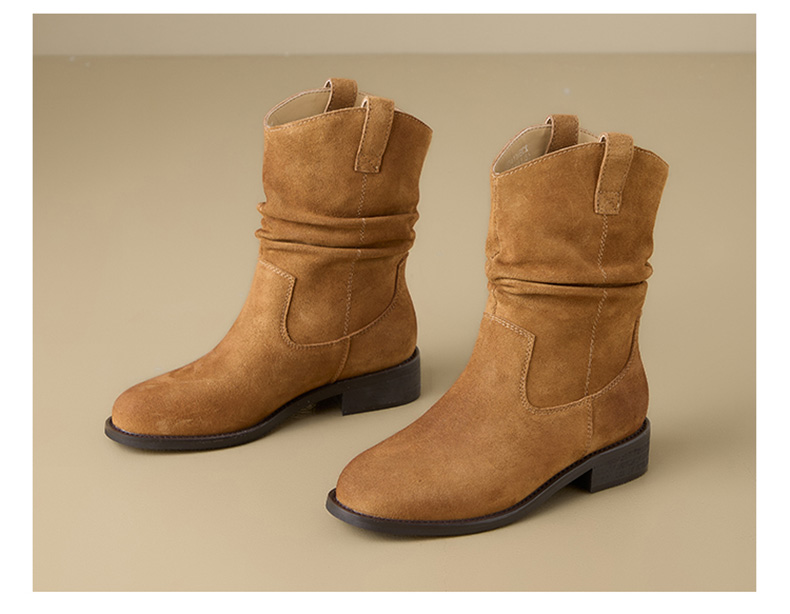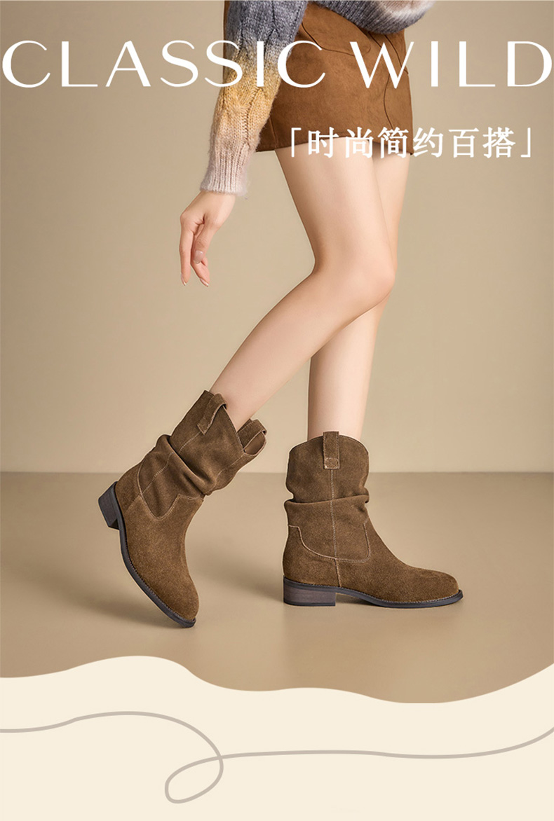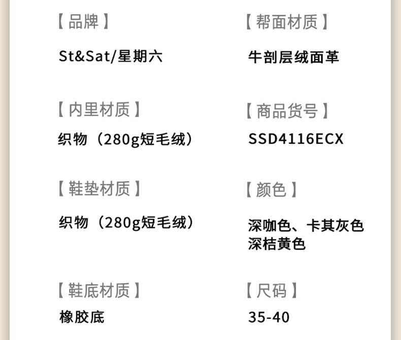 【绒里可选】星期六复古美拉德粗跟V扣堆堆靴SSD4116ECX