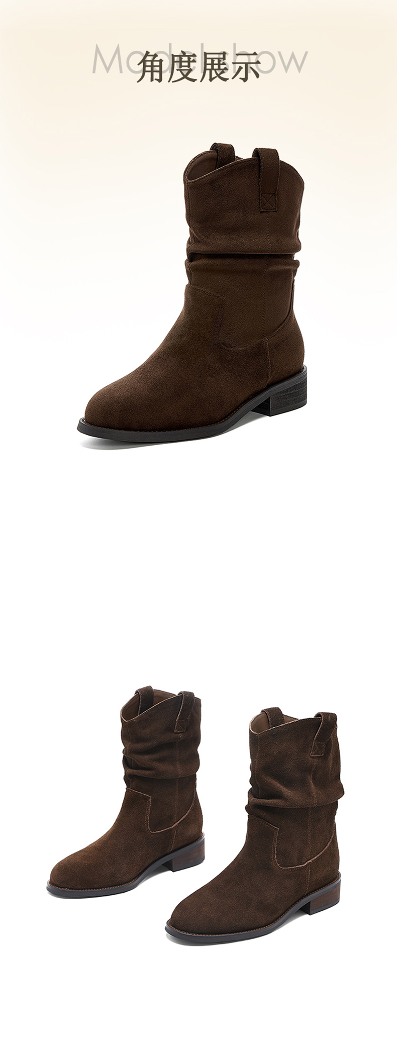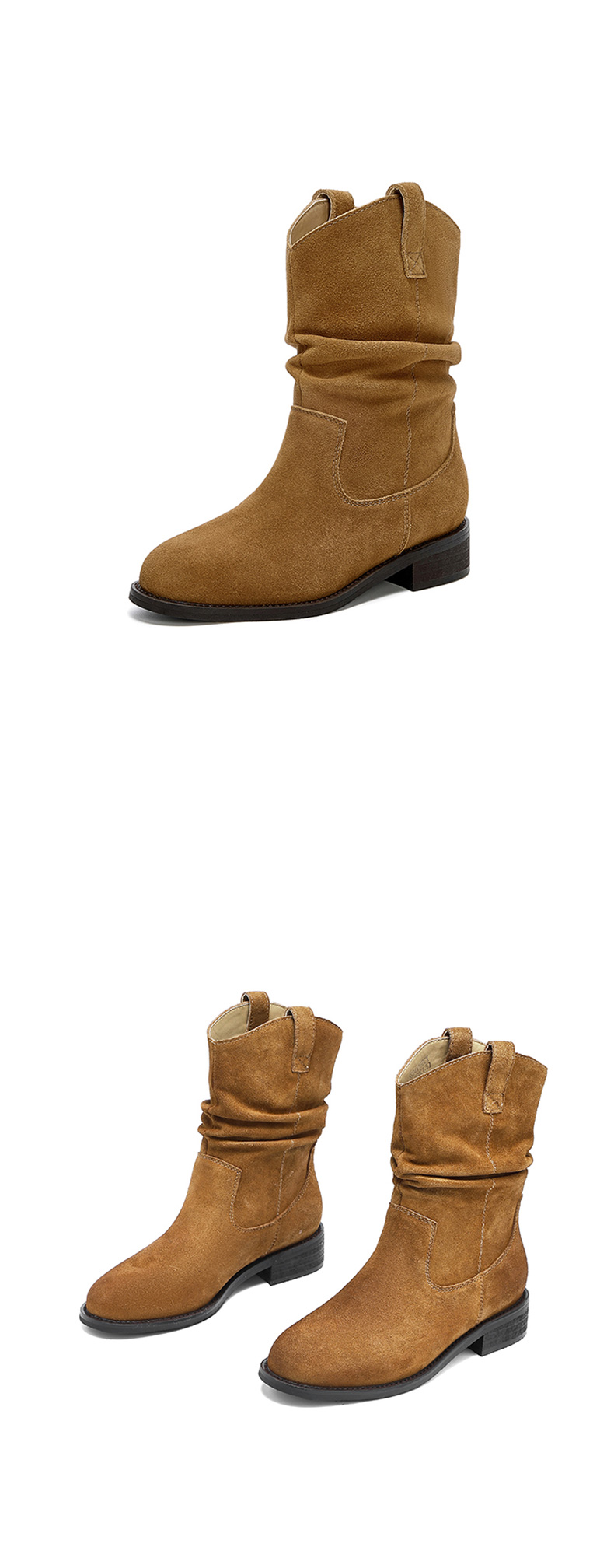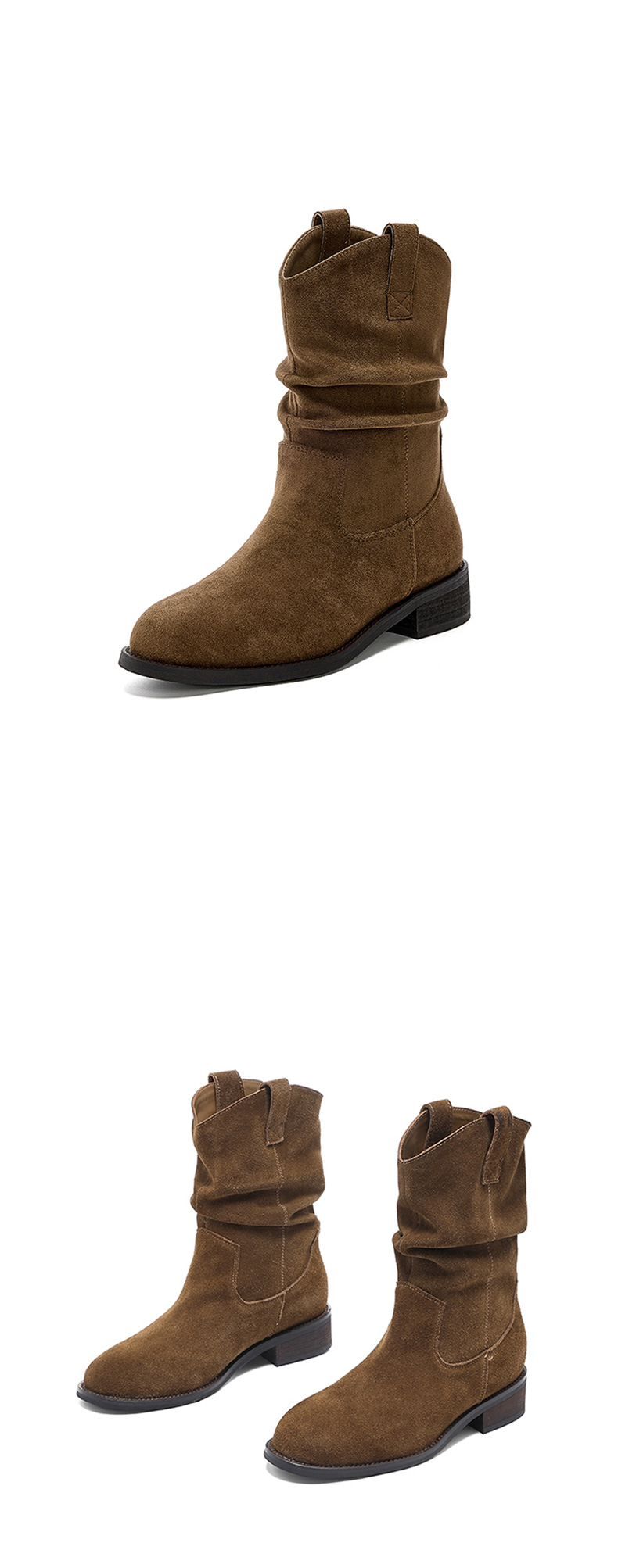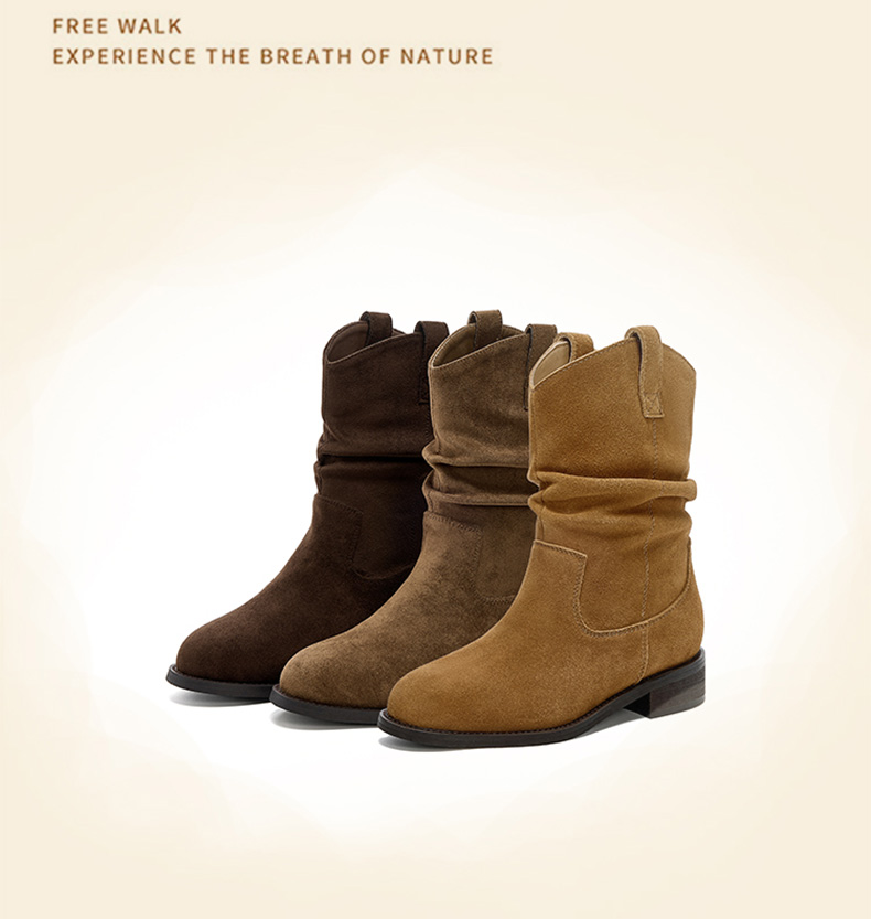 【绒里可选】星期六复古美拉德粗跟V扣堆堆靴SSD4116ECX