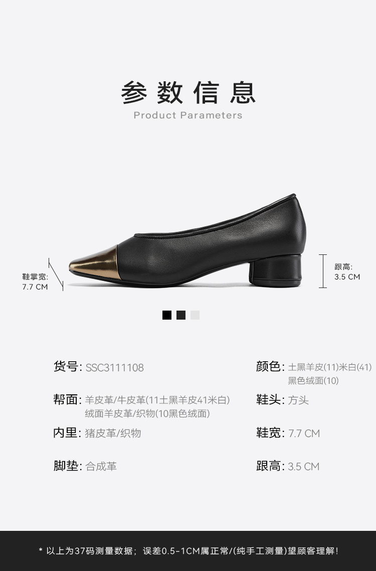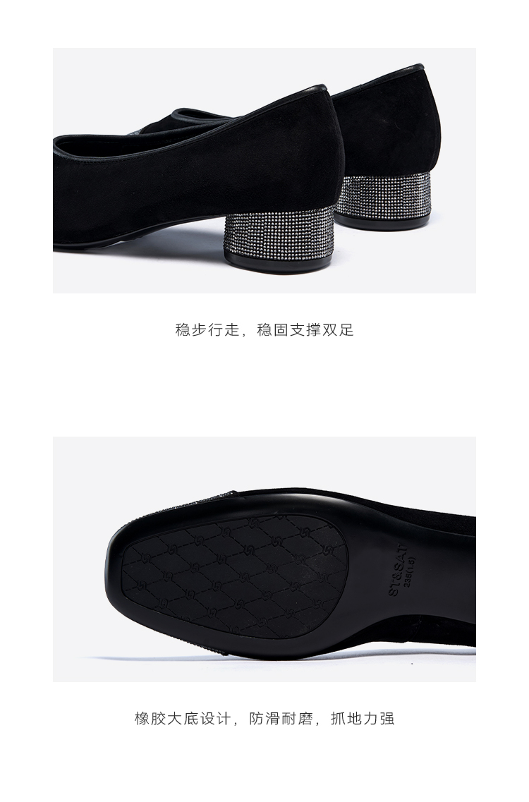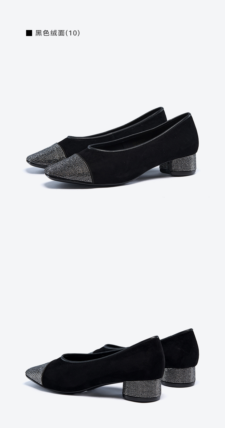 星期六通勤百搭绒面细钻粗跟单鞋SSC3111108