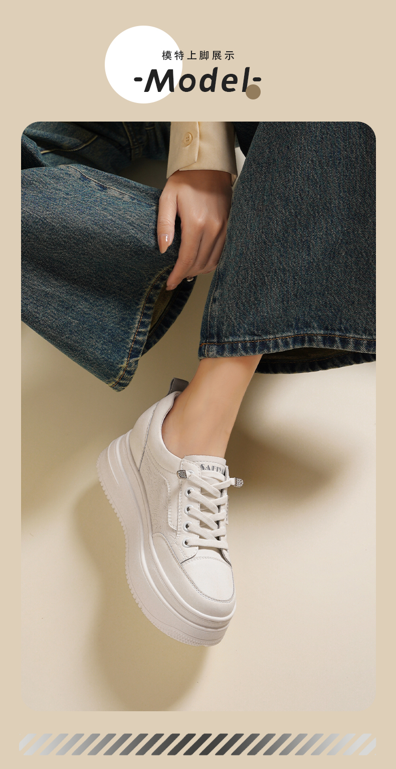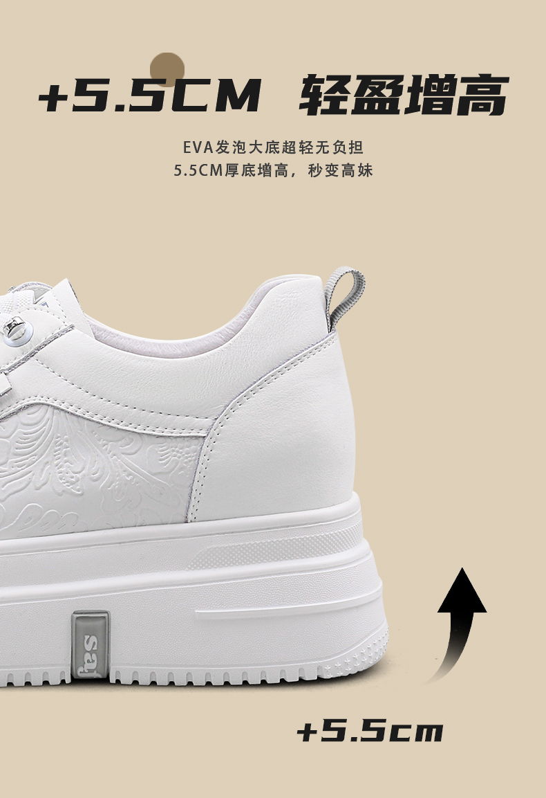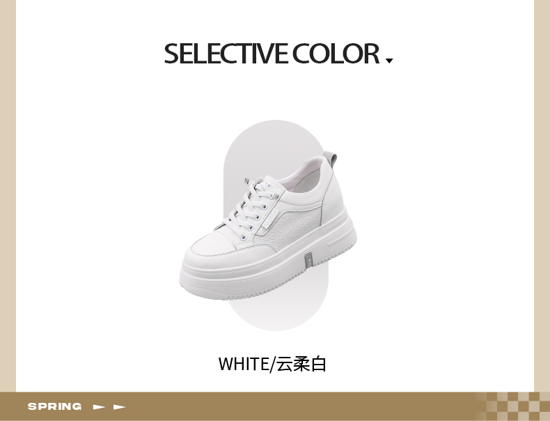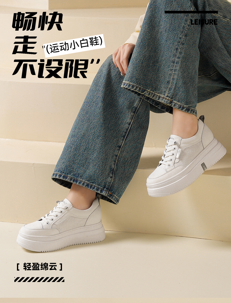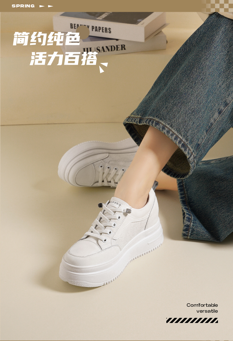 Safiya/索菲娅2025春新款轻便休闲增高厚底运动小白鞋 SFD1112018