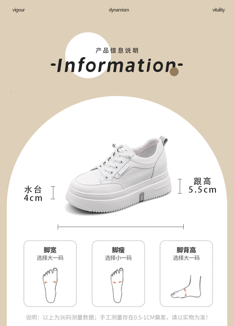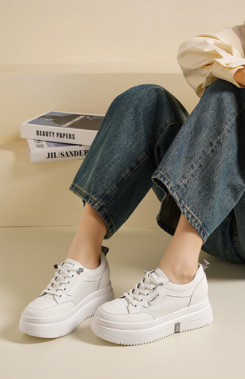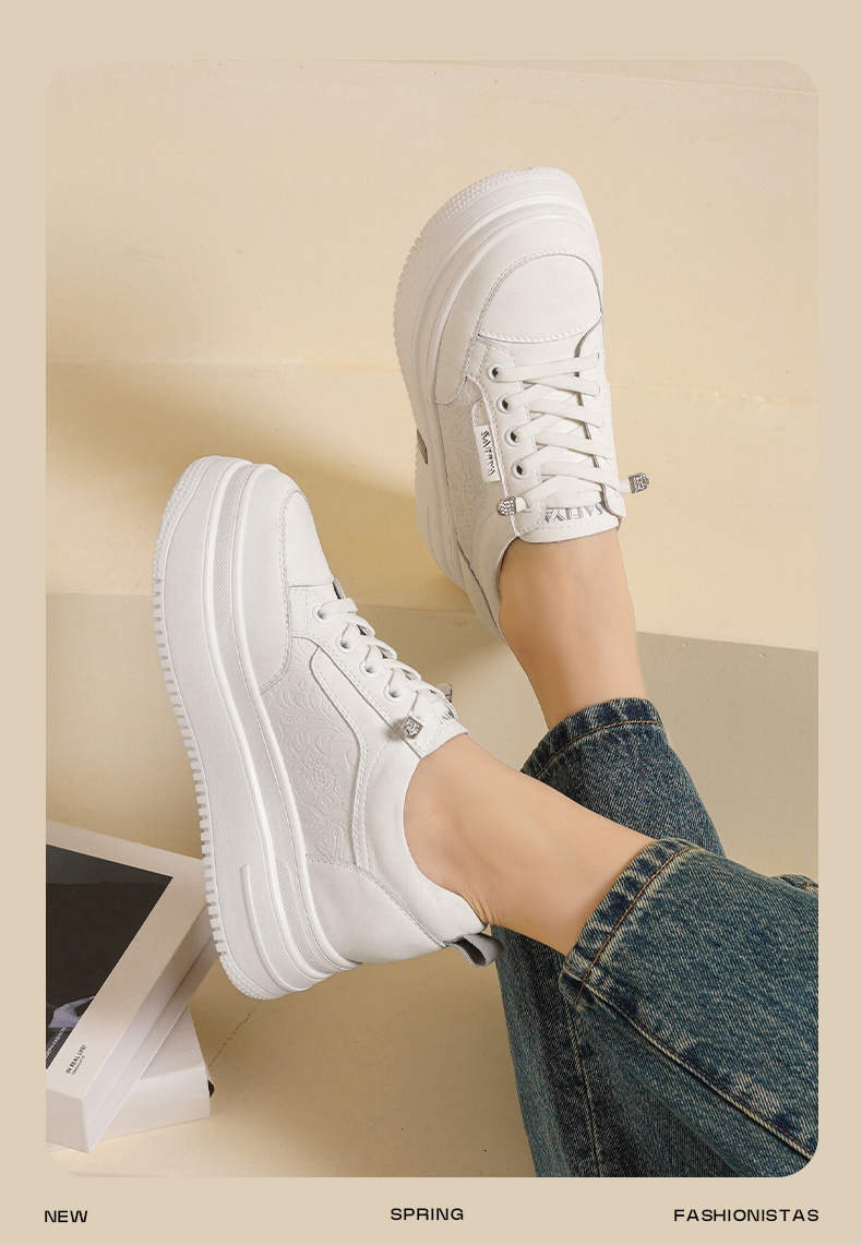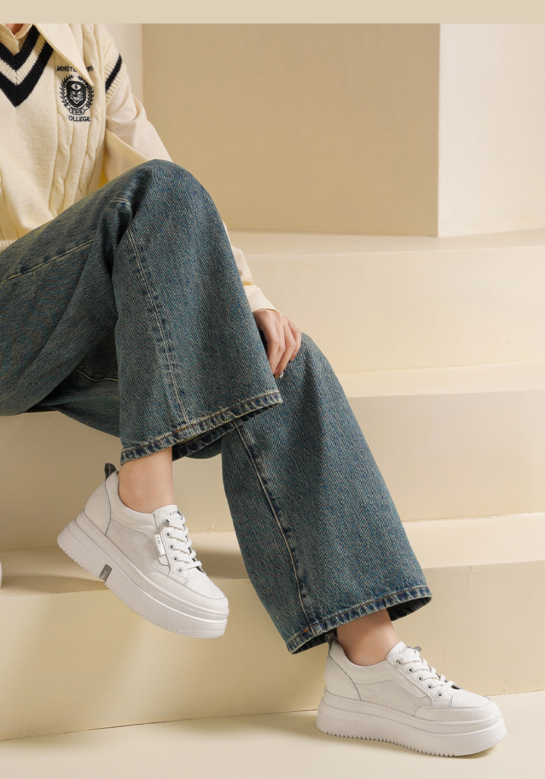 Safiya/索菲娅2025春新款轻便休闲增高厚底运动小白鞋 SFD1112018