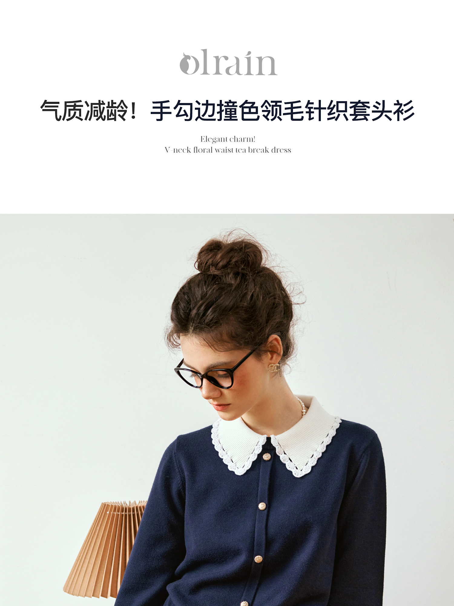 OLrain欧芮儿法式撞色针织衫女秋季2024年新款休闲减龄套头上衣