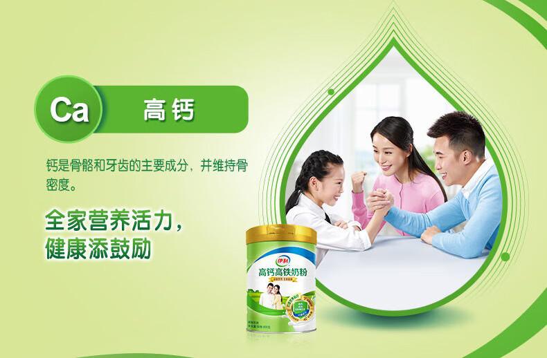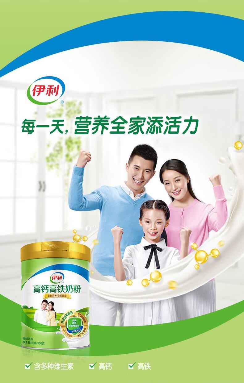 伊利高钙高铁奶粉900g罐成人青少年学生女士中老年牛奶粉营养早餐