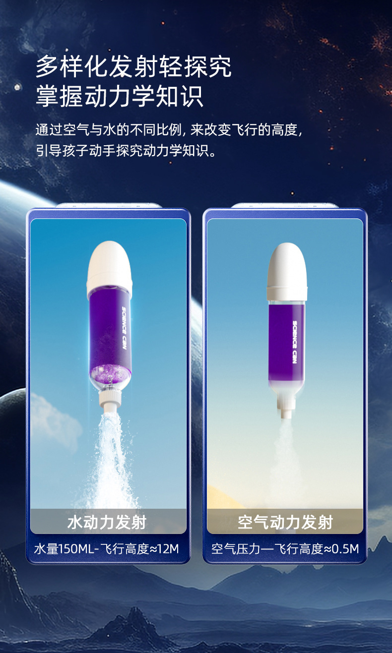 【沉浸式体验航空火箭发射】科学罐头水动力冲天小飞箭 脚踩火箭发弹射器飞天儿童户外玩具 掌握动力学知识 感受航天科技魅力