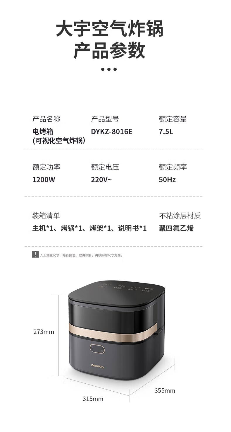 韩国大宇 可视化空气炸锅DYKZ-8016E