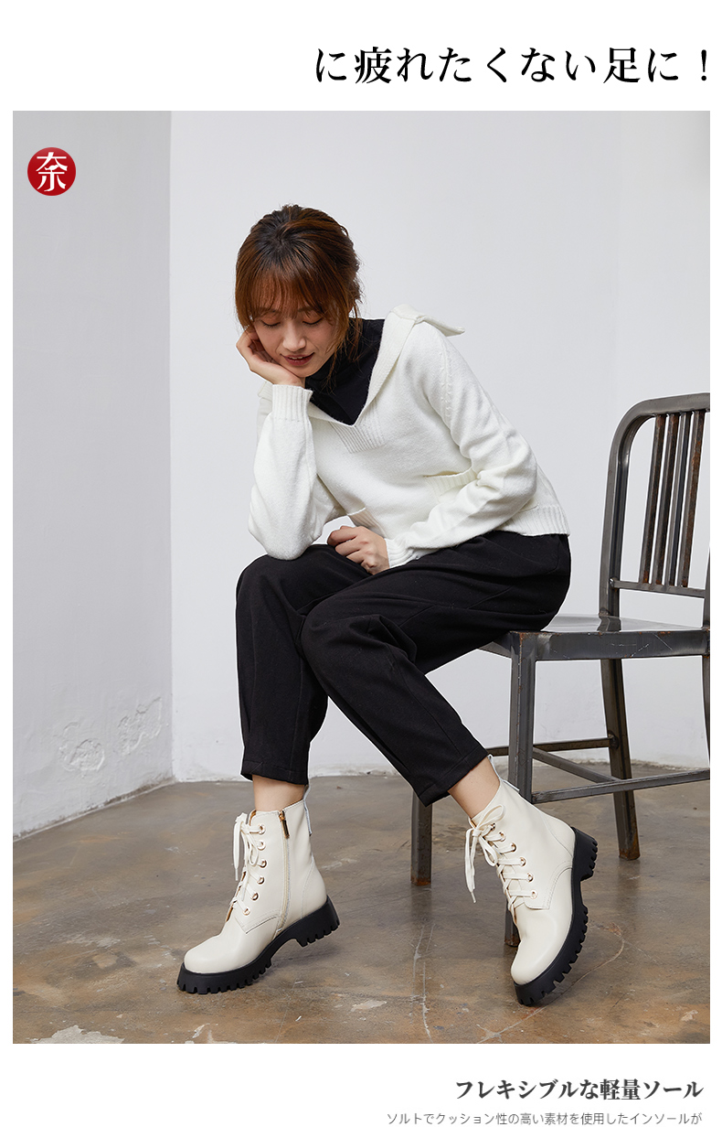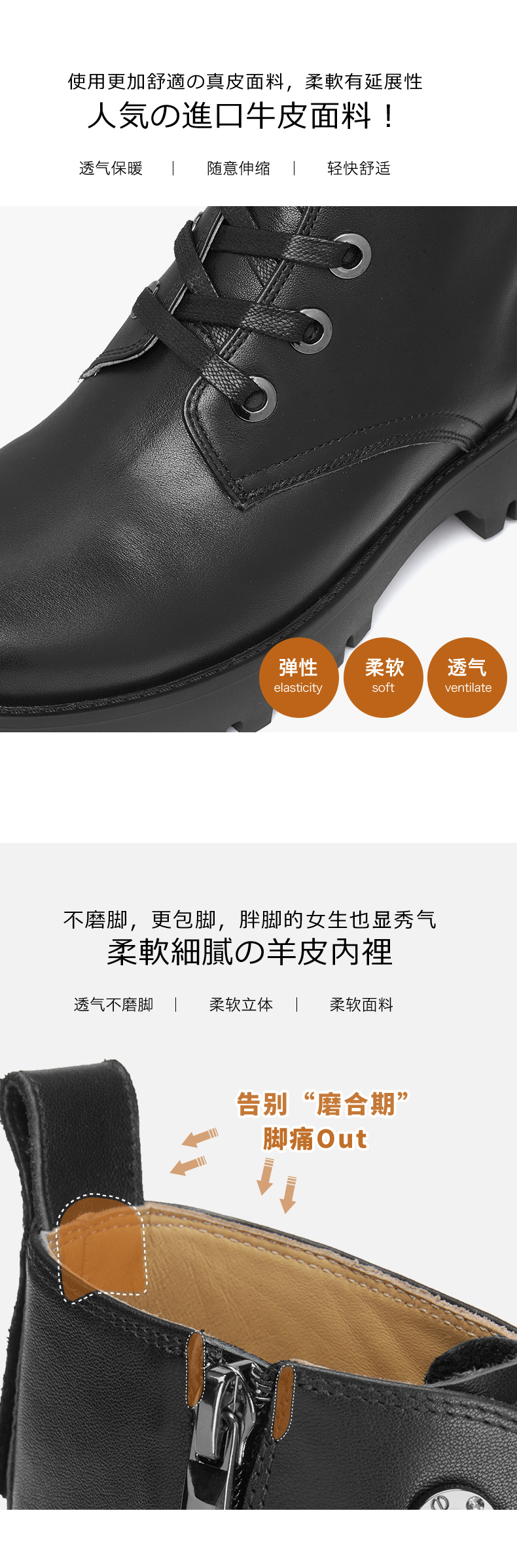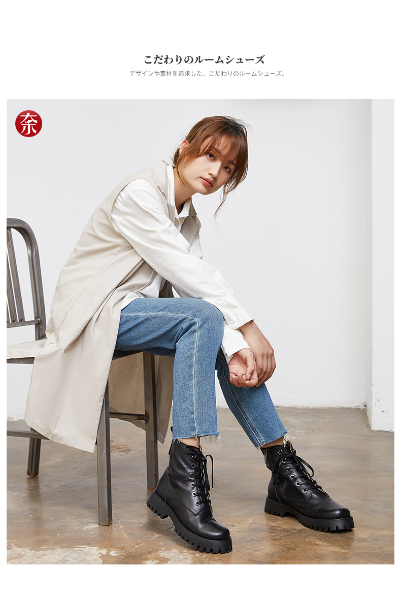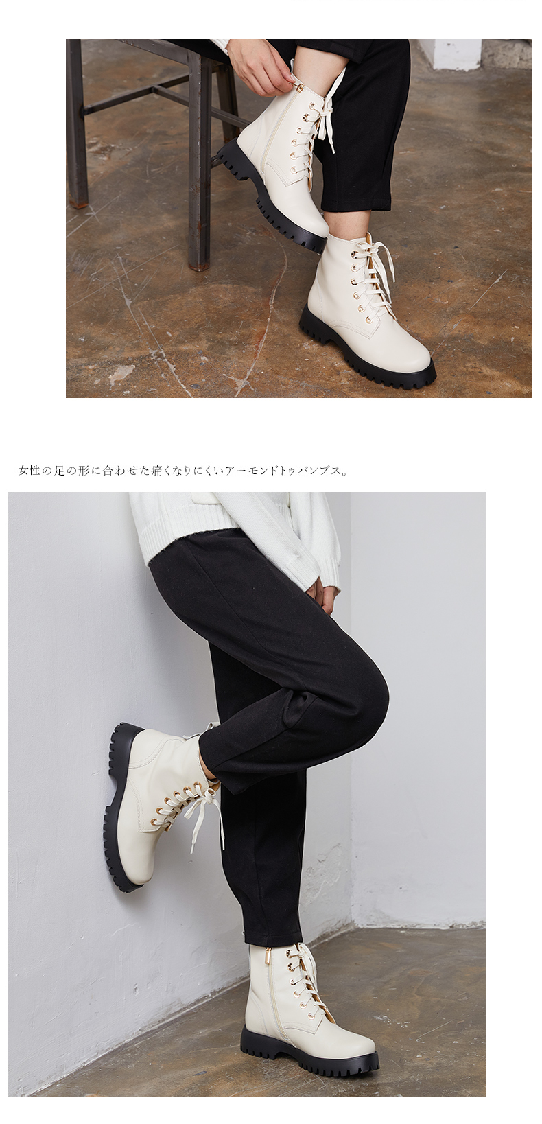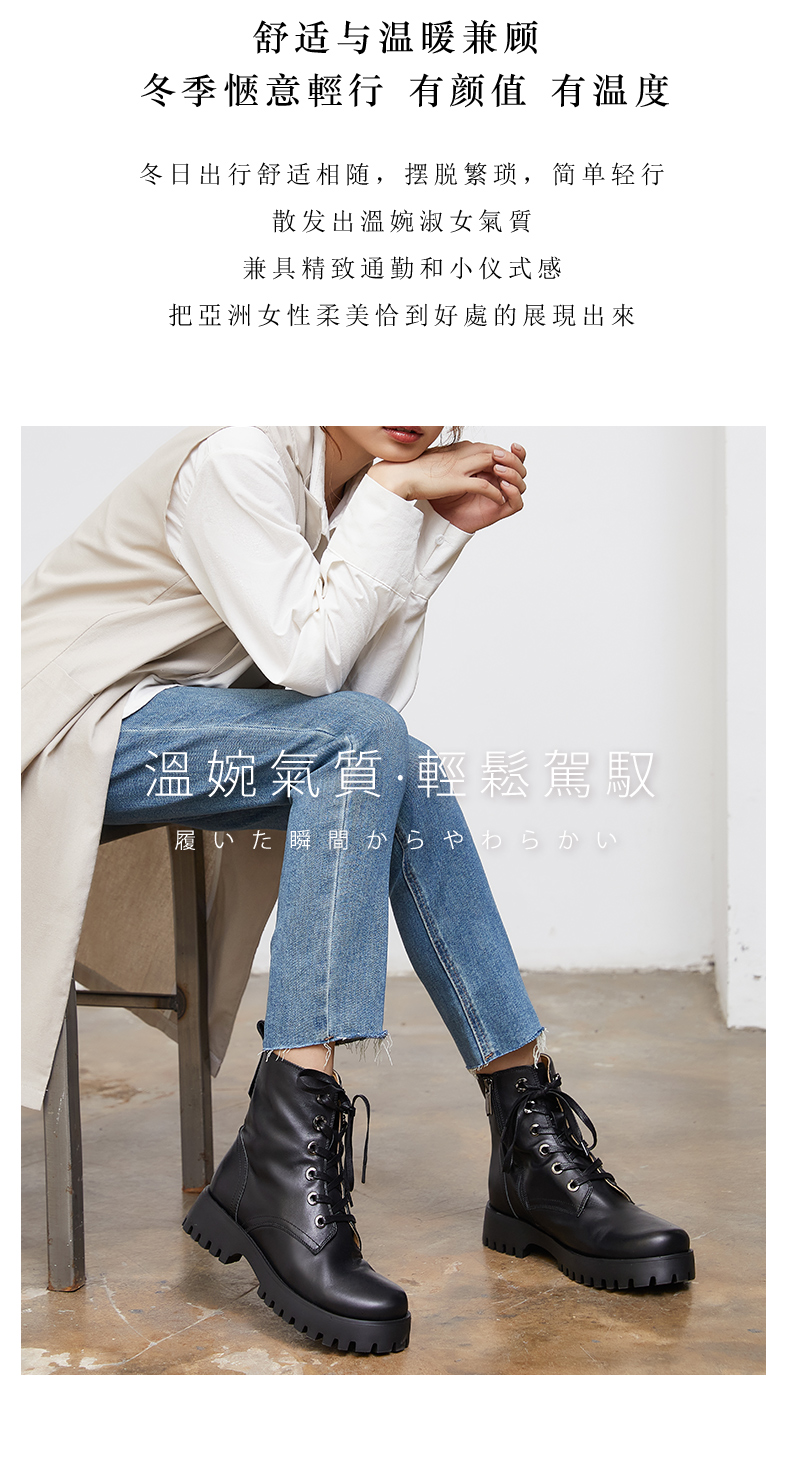 ARCHCONTACT安启美奈圆头舒适牛皮系带马丁靴52780