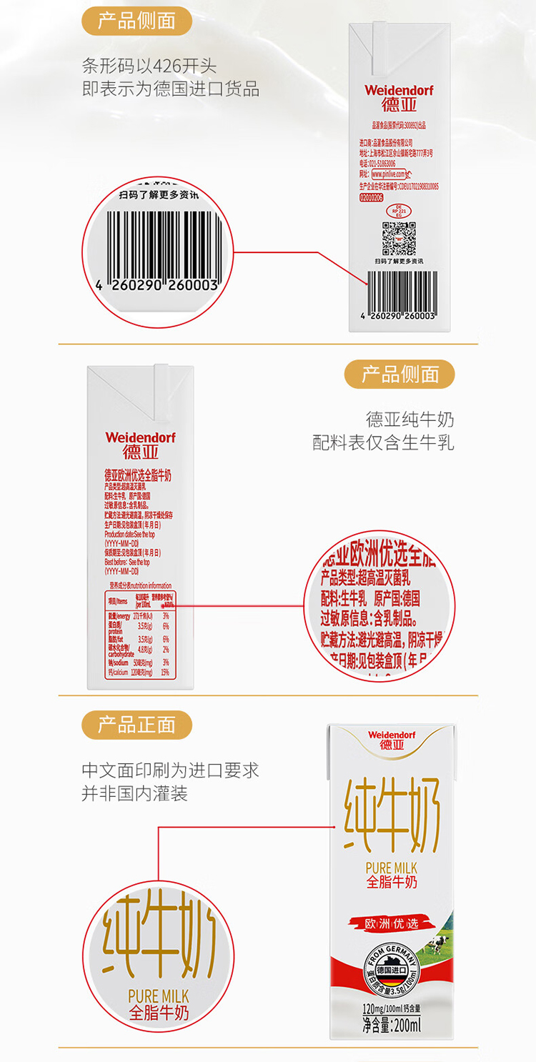 【顺丰/京东发货】德亚欧洲优选全脂纯牛奶200ml*10礼盒