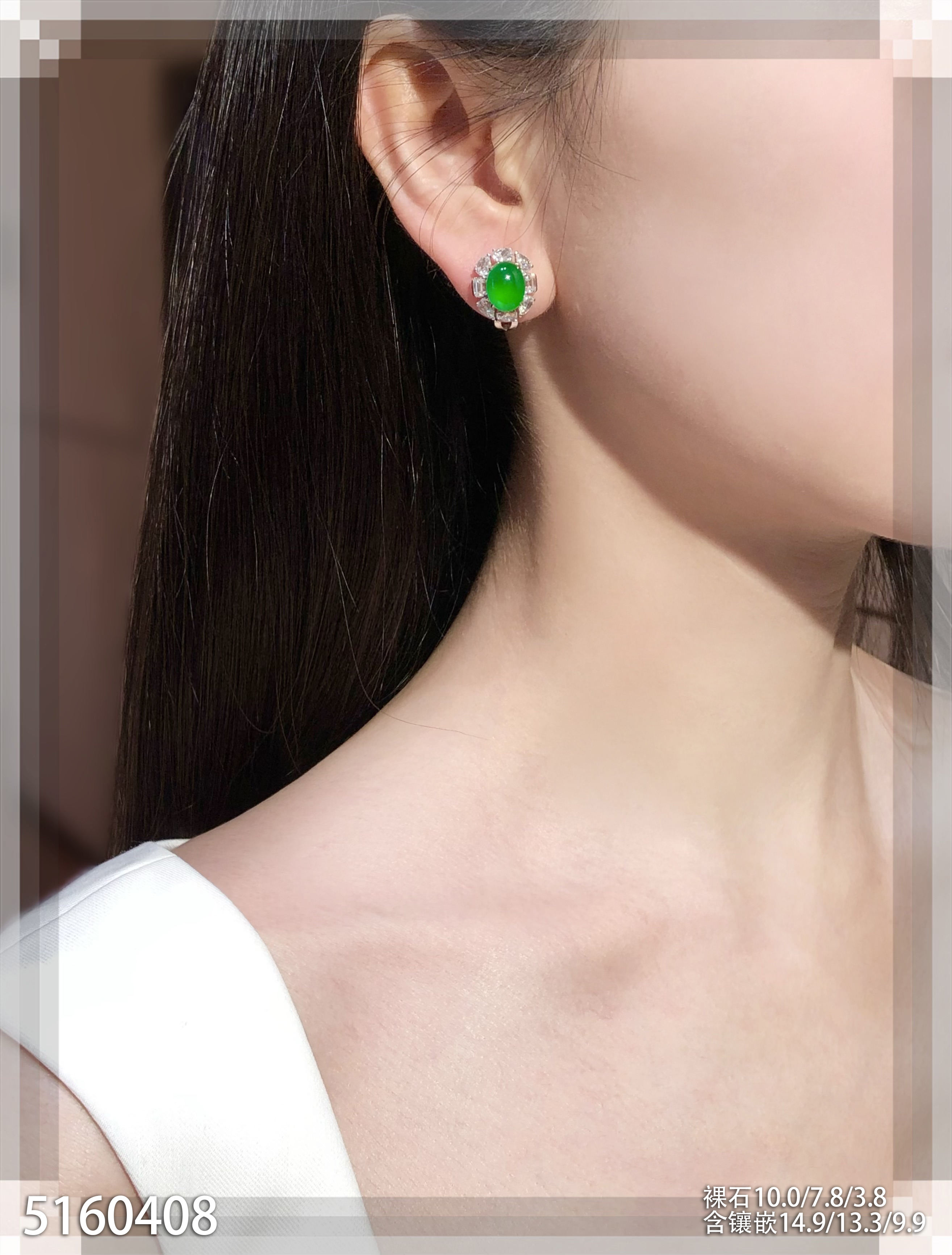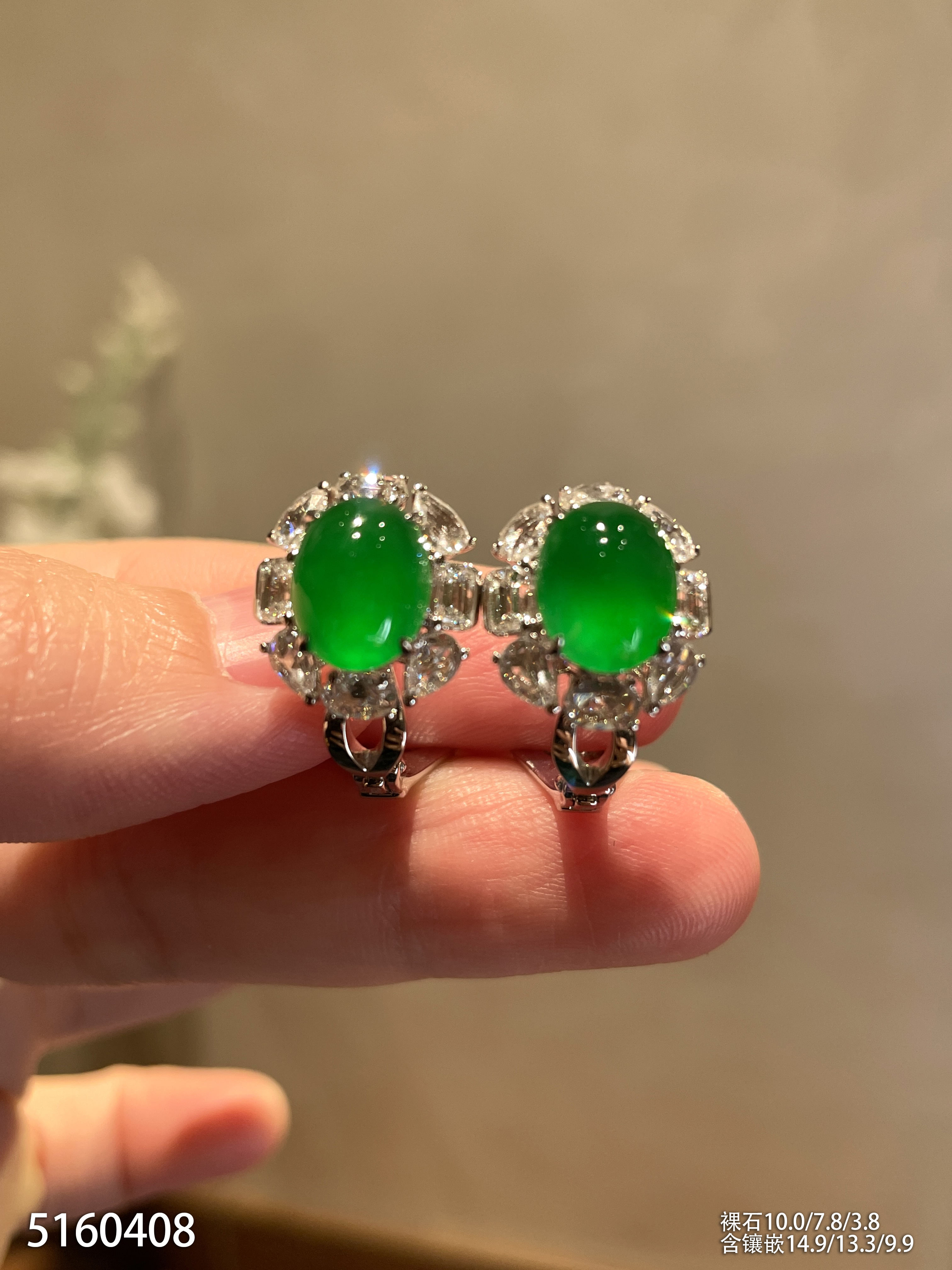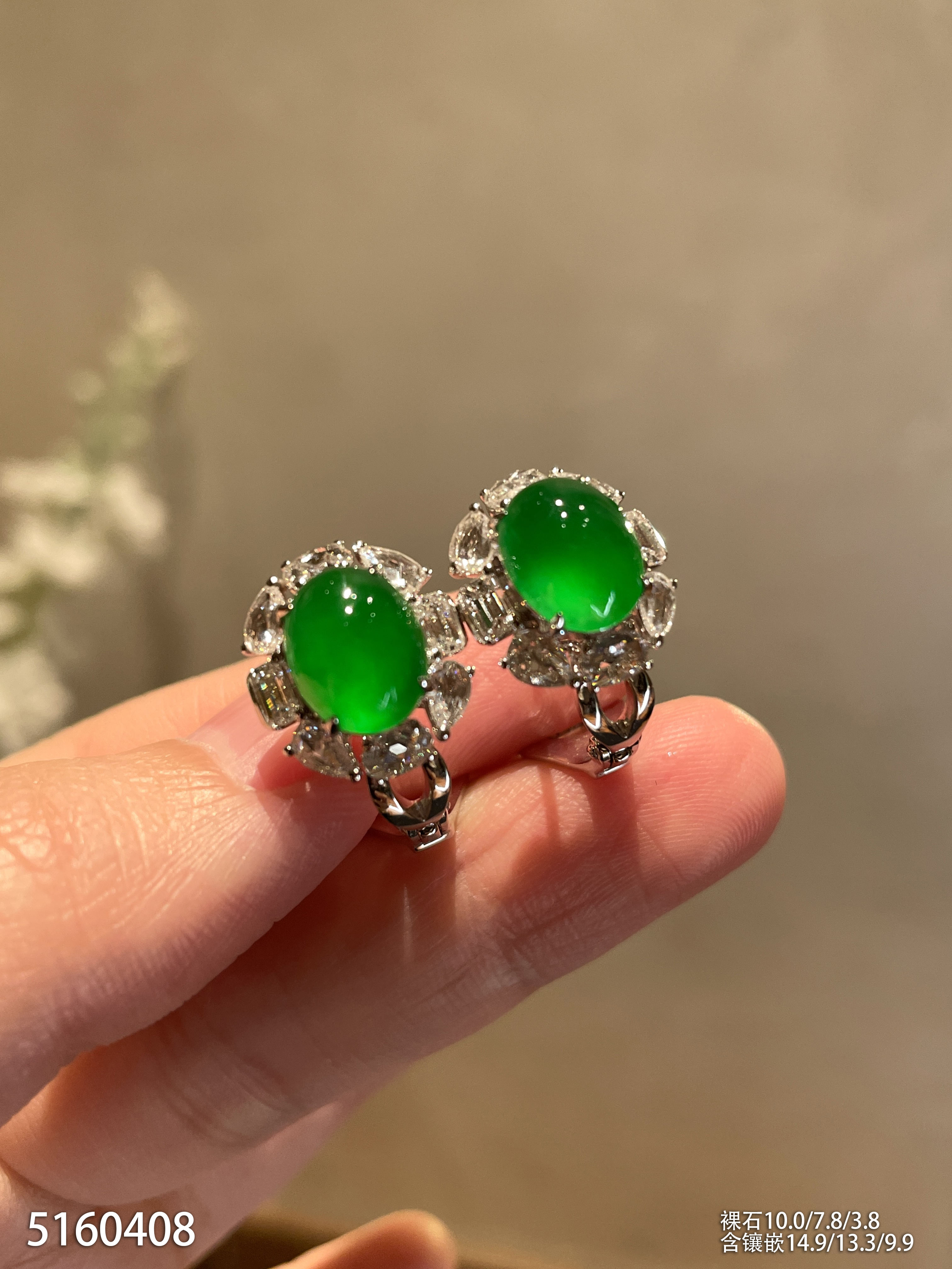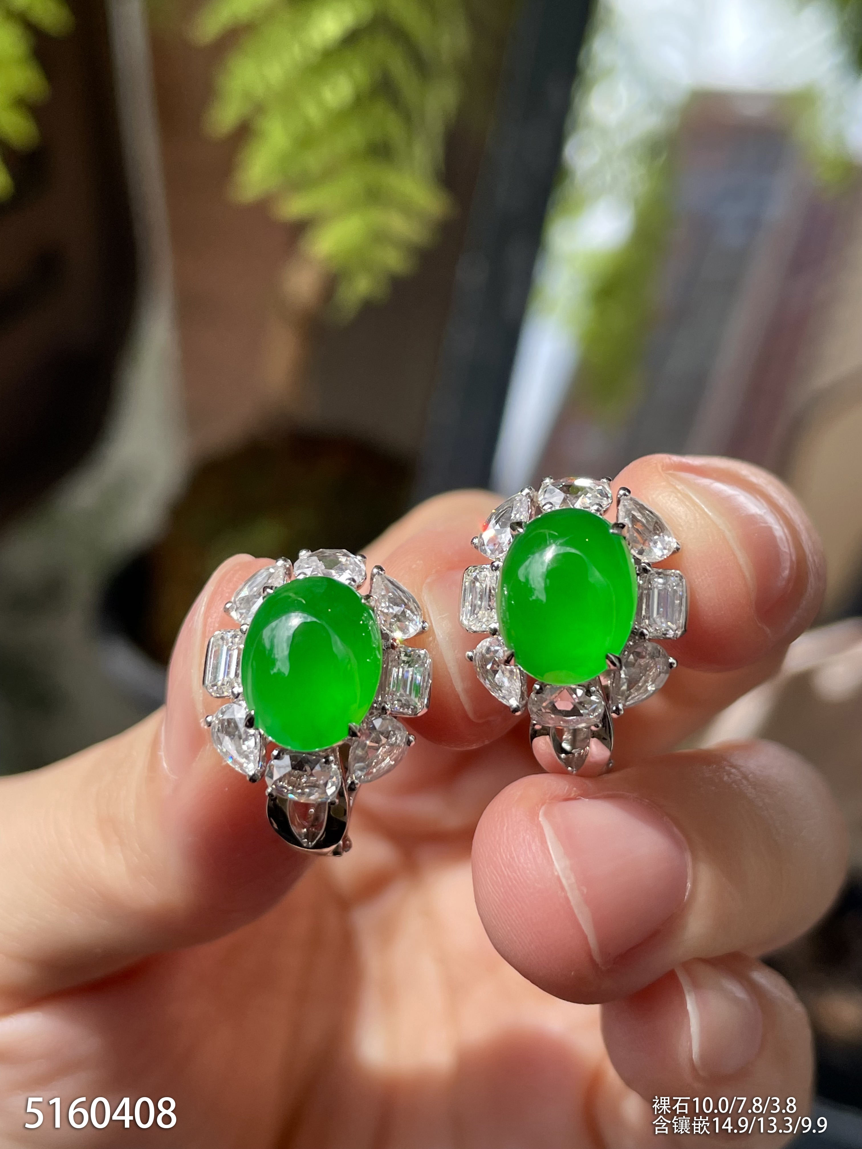 老坑玻璃种艳绿蛋面耳钉【5160408】具体价格微信咨询
