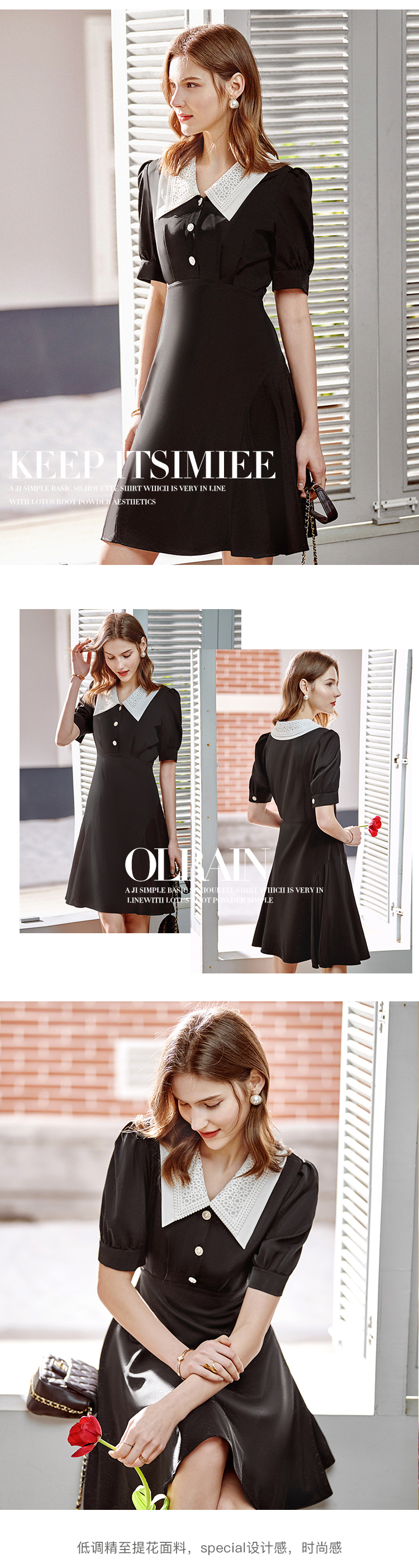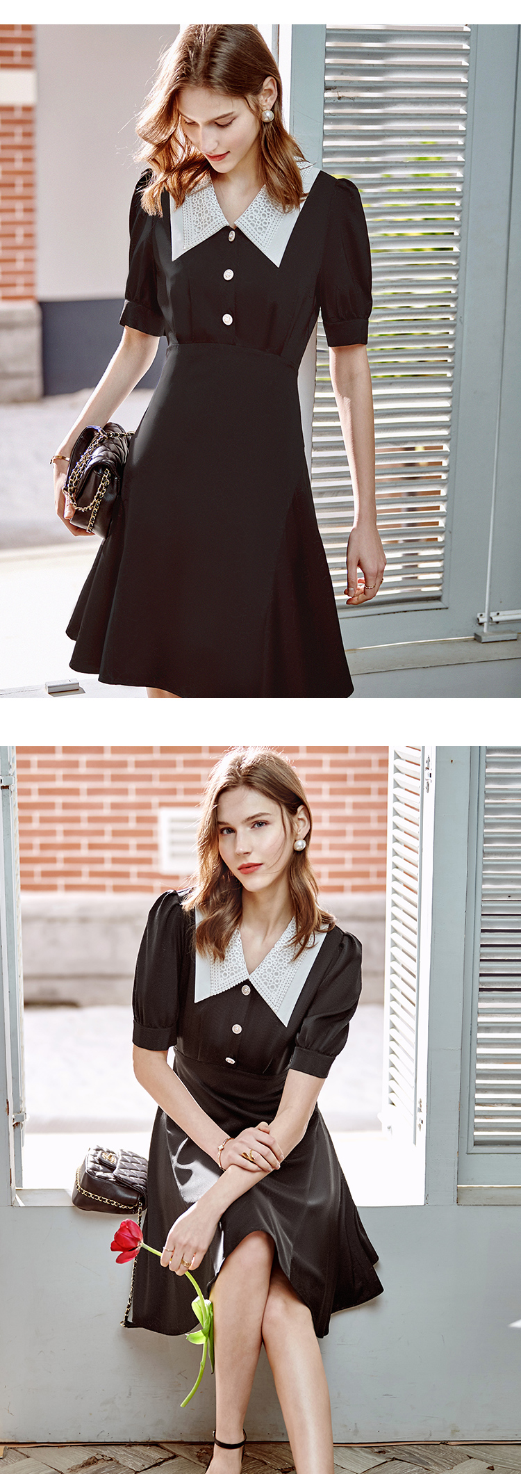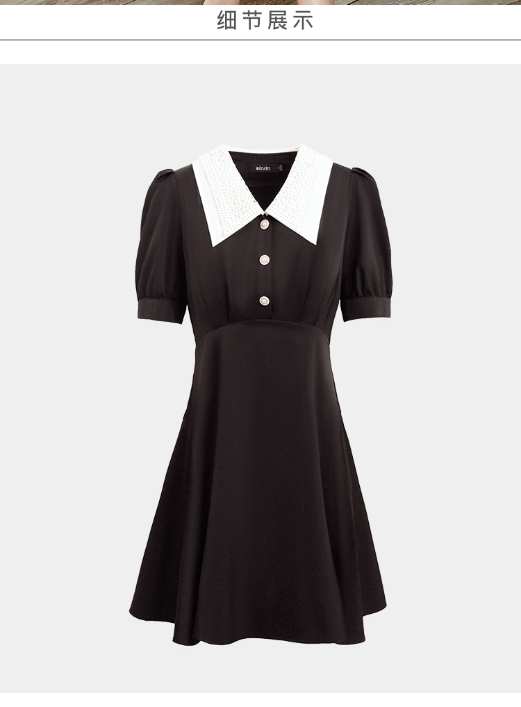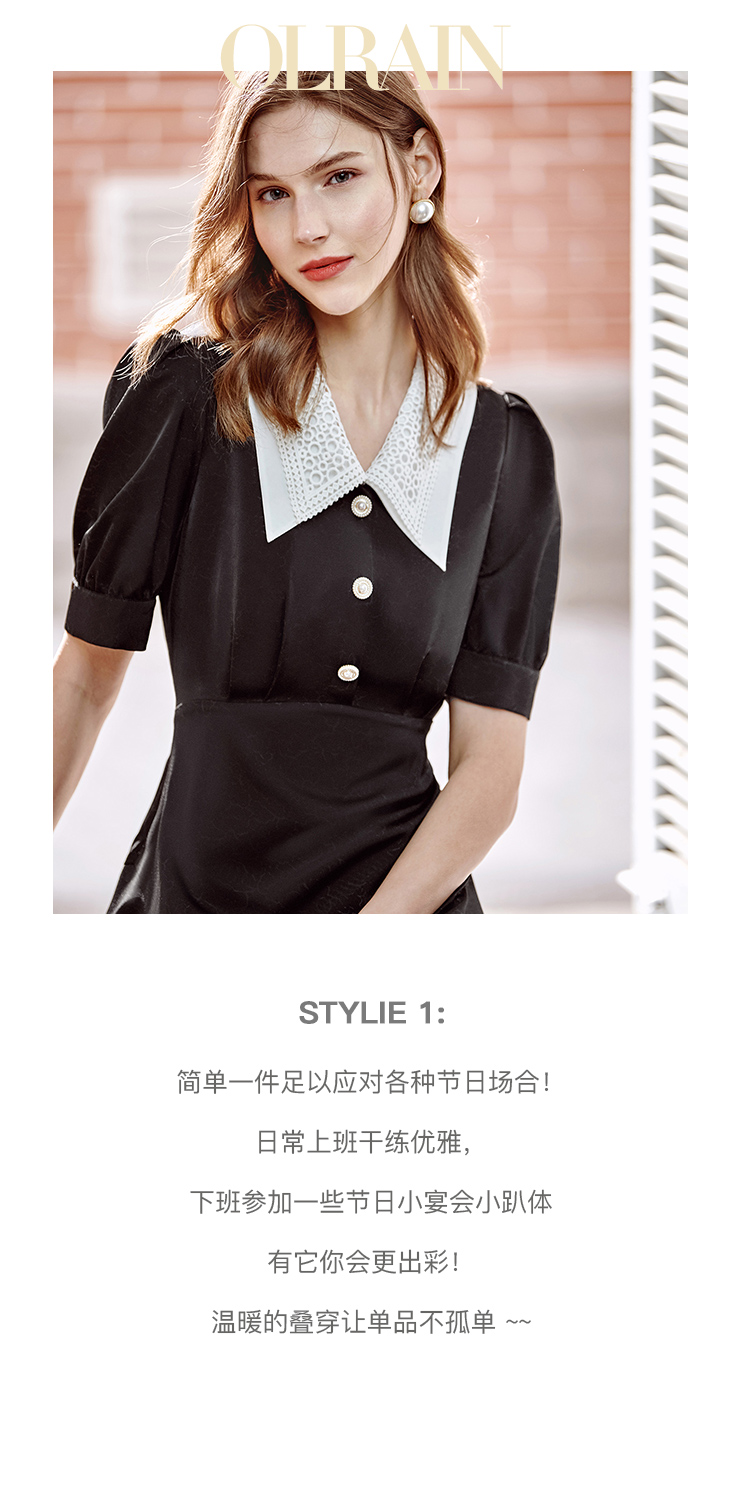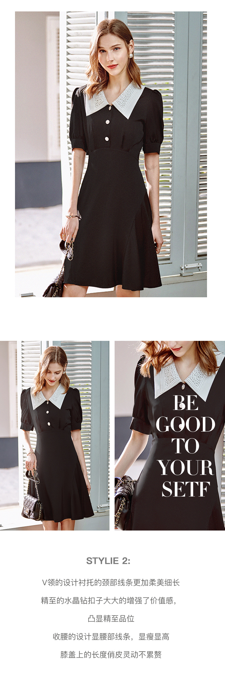 欧芮儿黑色连衣裙女2021新款收腰显瘦精致拼领高雅名媛风裙子