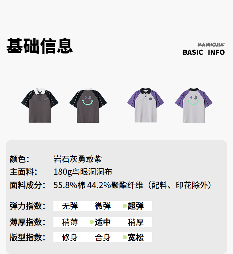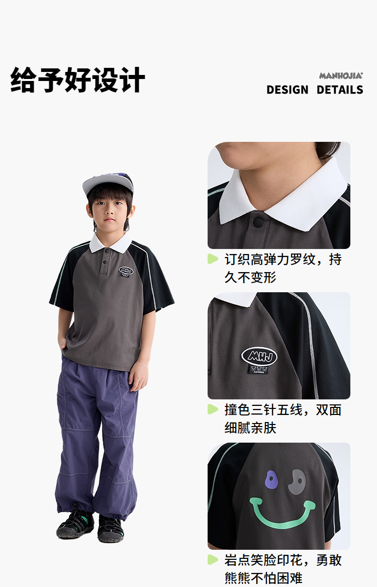 漫画家【笑脸POLO】城市轻户外吸湿速排岩点笑脸POLO短袖T夏