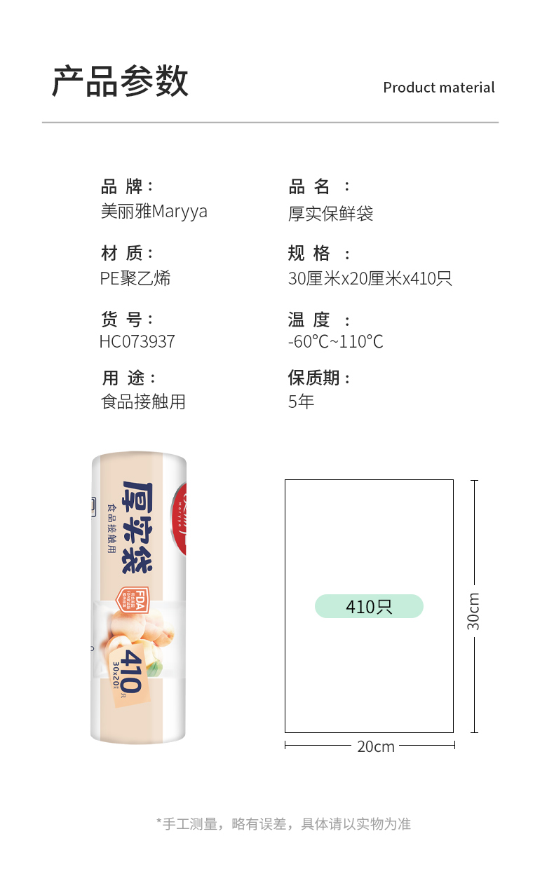 【批发】美丽雅厚实保鲜袋20*30cm 410只/卷