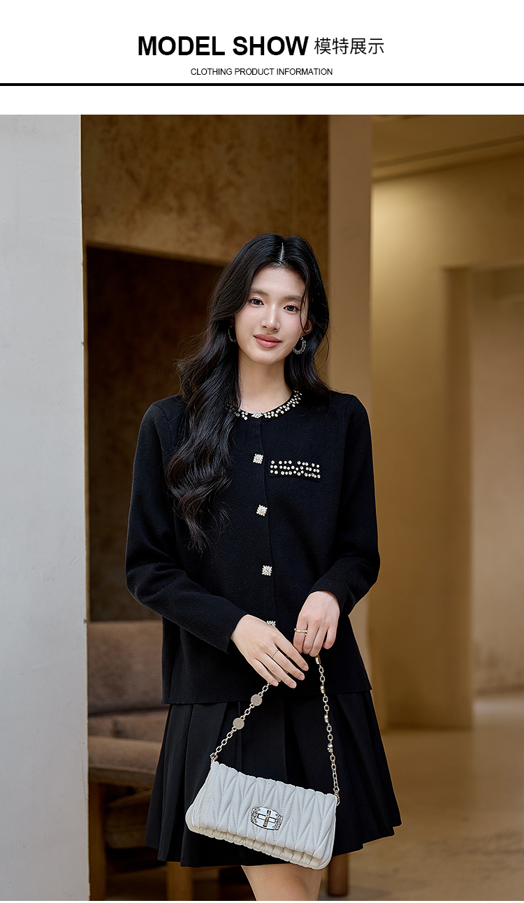 奢姿大码女装2025冬季时尚钻饰圆领针织开衫胖妹妹气质减龄上衣9854670583
