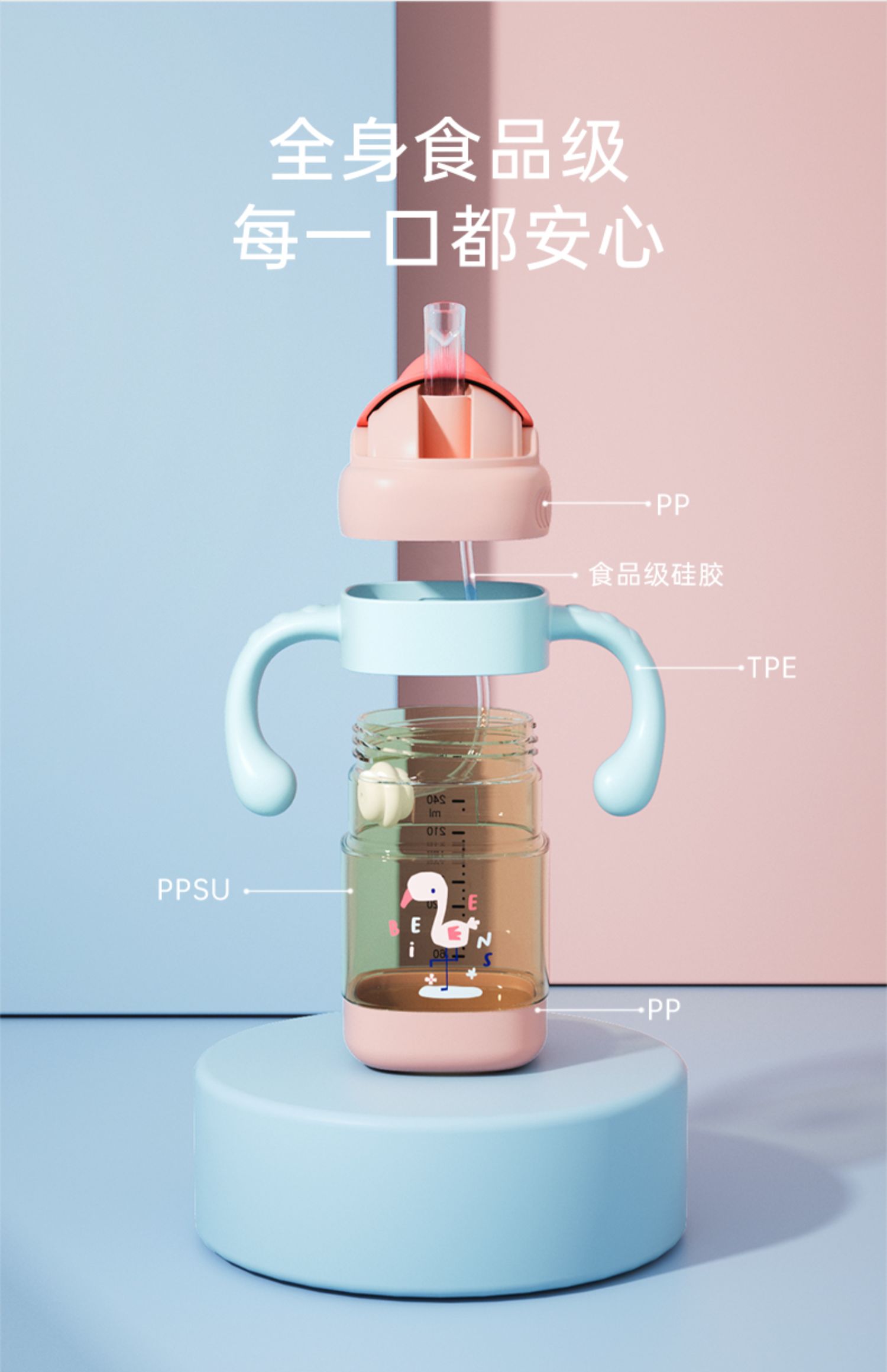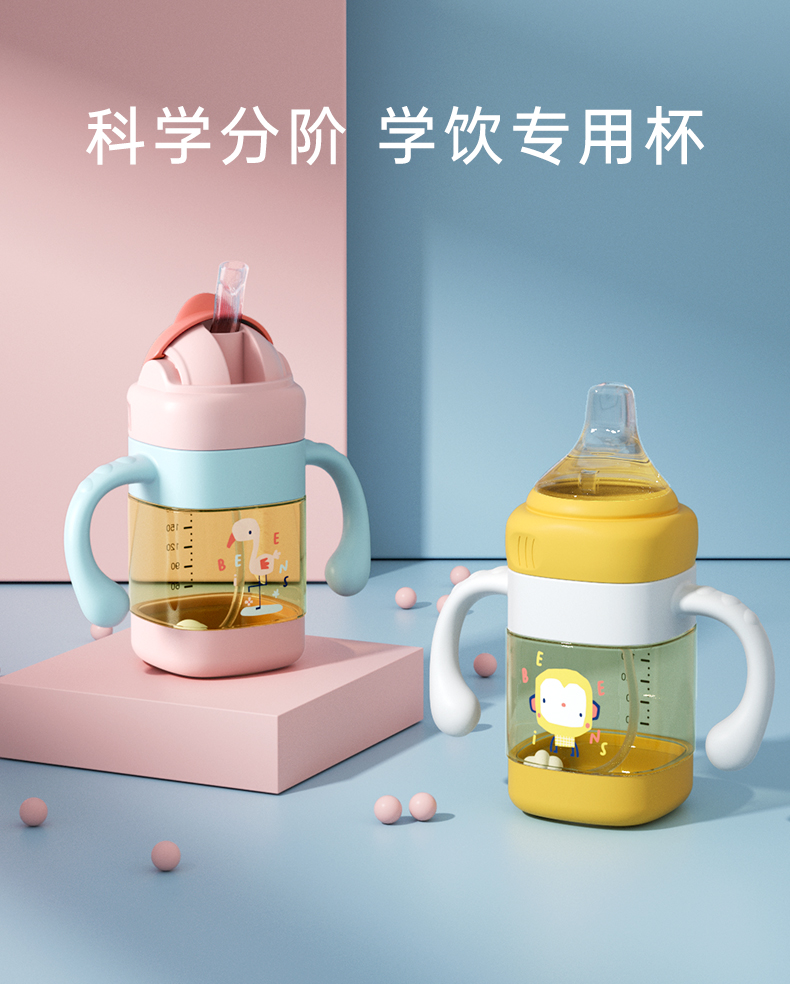 贝恩施儿童水杯吸管杯宝宝学饮杯鸭嘴杯婴儿喝水喝奶两用杯子