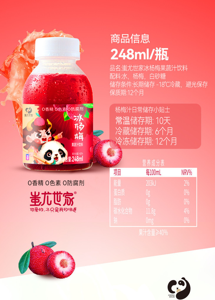 蚩尤世家冰杨梅汁 248毫升*6瓶(果蔬汁饮料)
