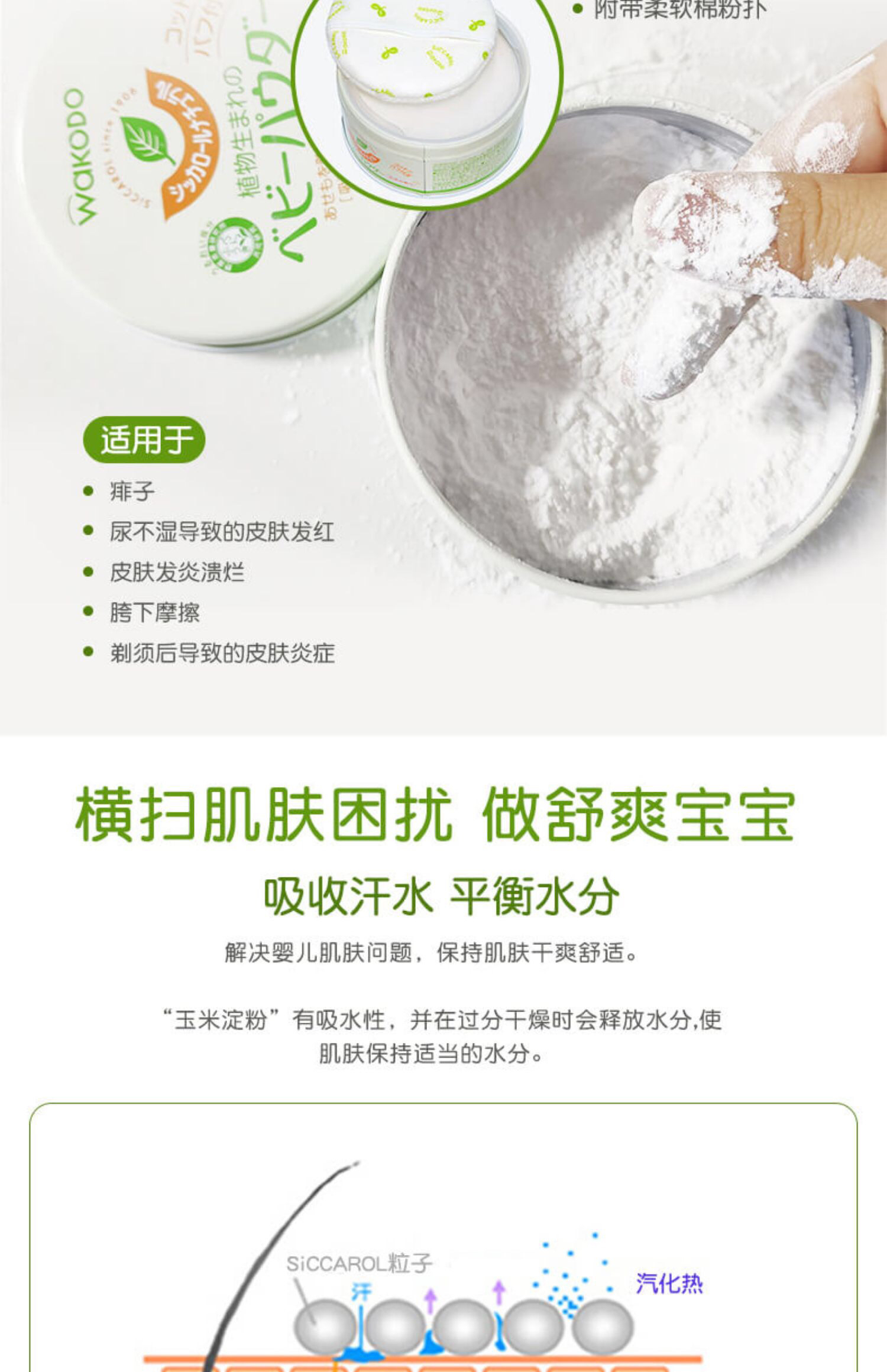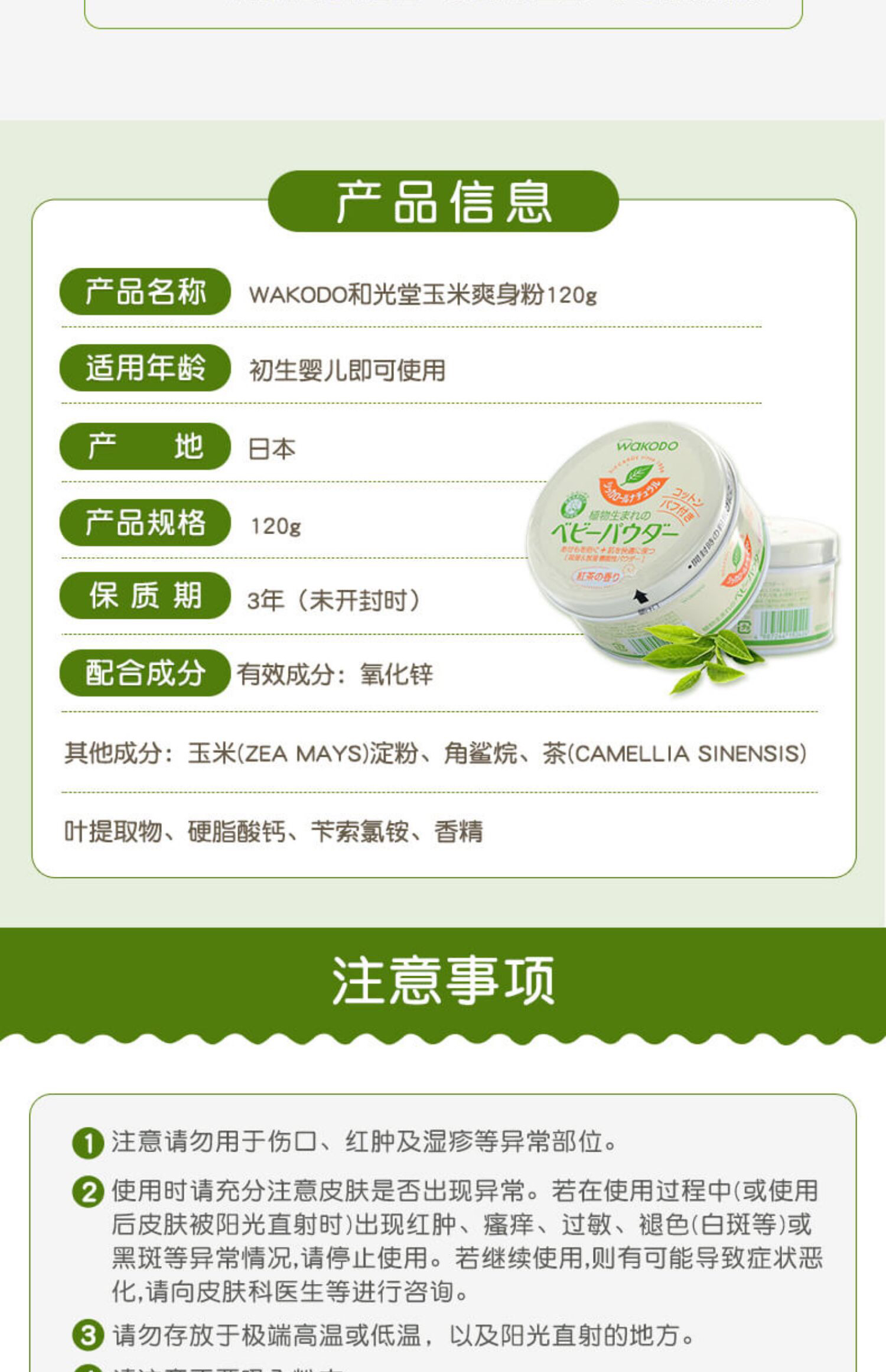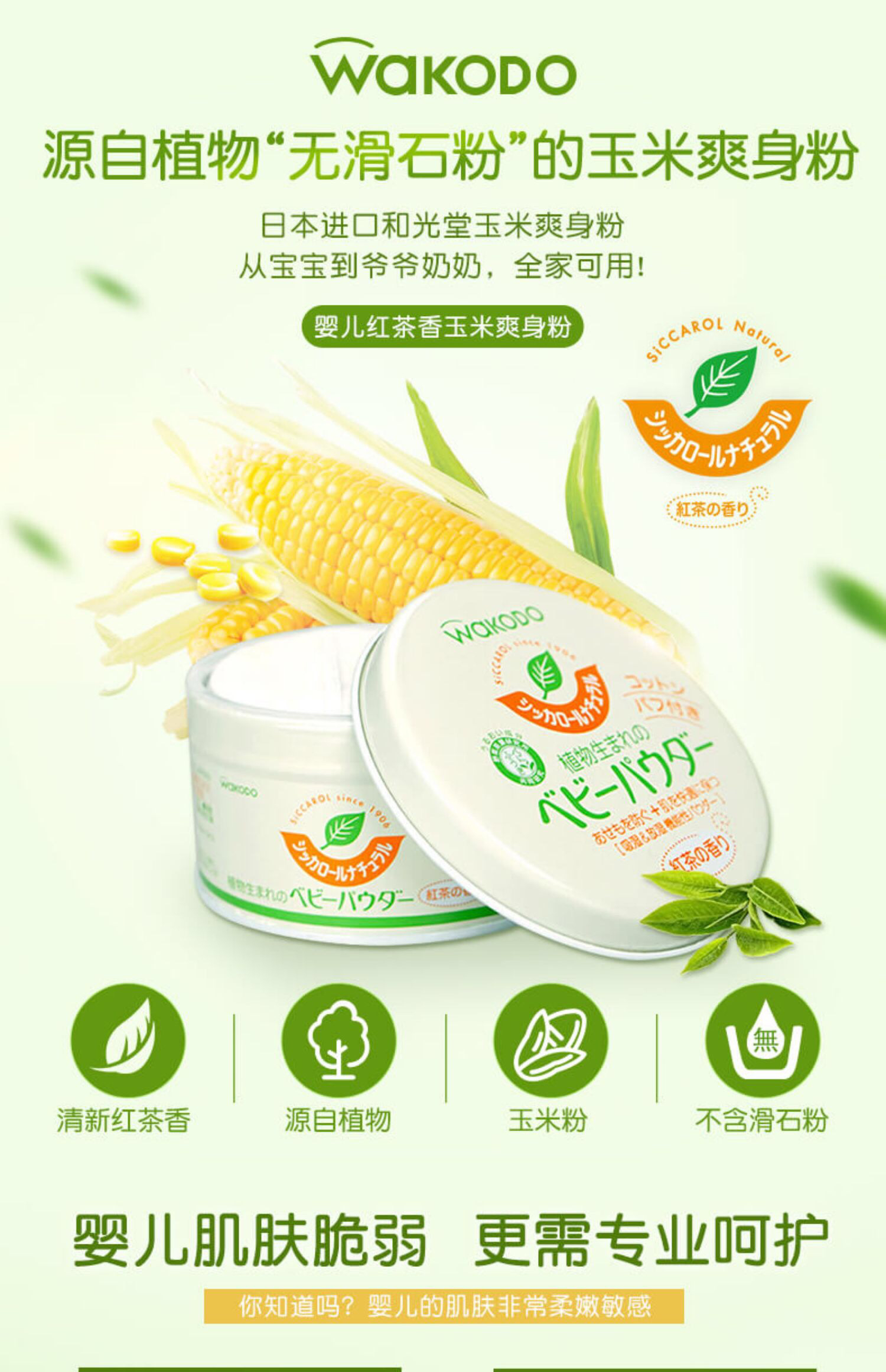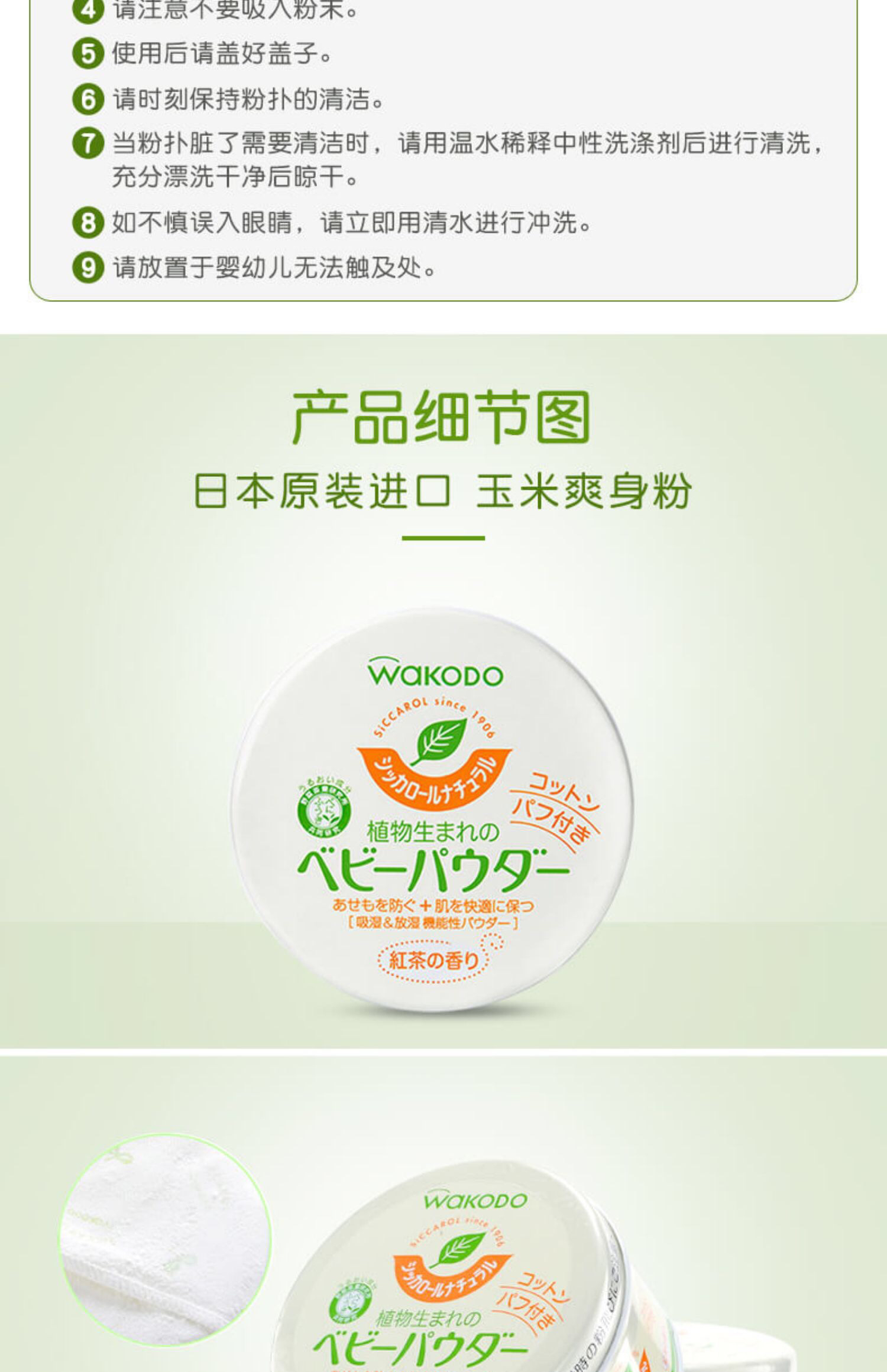 日本WAKODO和光堂-新生婴儿痱子粉祛痱红茶香玉米爽身粉-会员6折