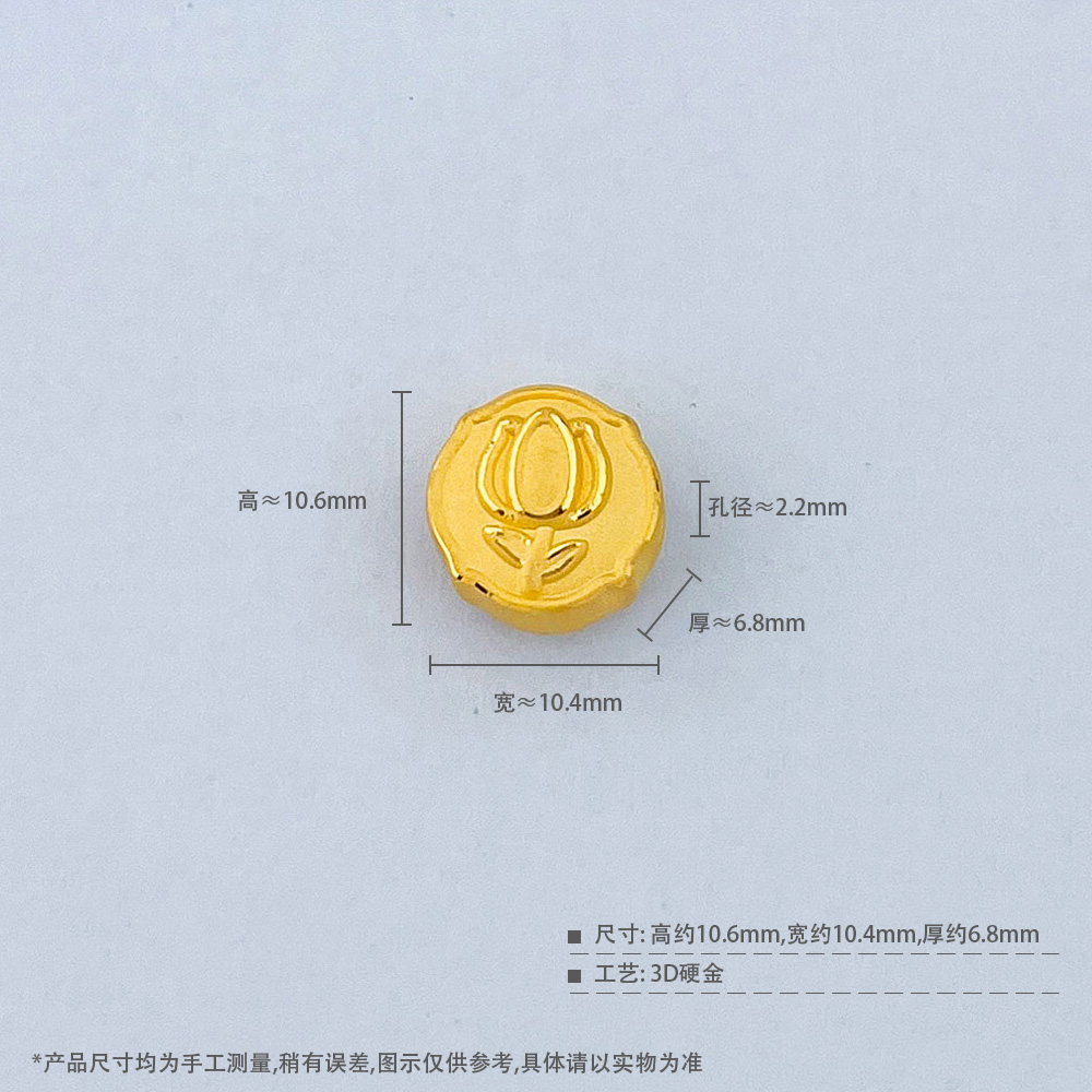【限时7.5折】【定价黄金】足金 【精品】3D硬金空心郁金香圆形手串配件(AU3DSC00002)(预售产品下单后不退款不退货不换货不补差价)