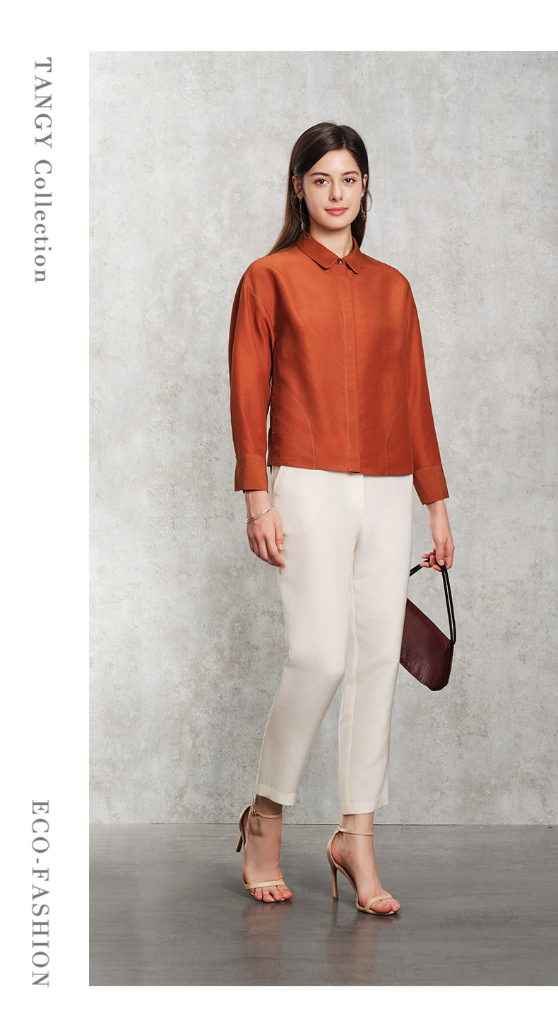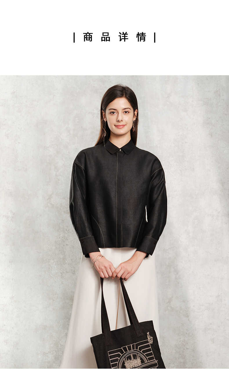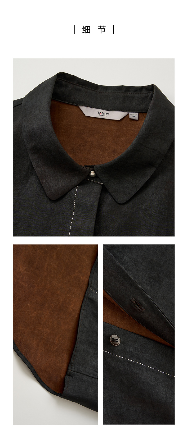 TANGY Collection天意精品2024春新品纯天然植物染宽松时尚落肩袖莨绸香云纱衬衫 L241015