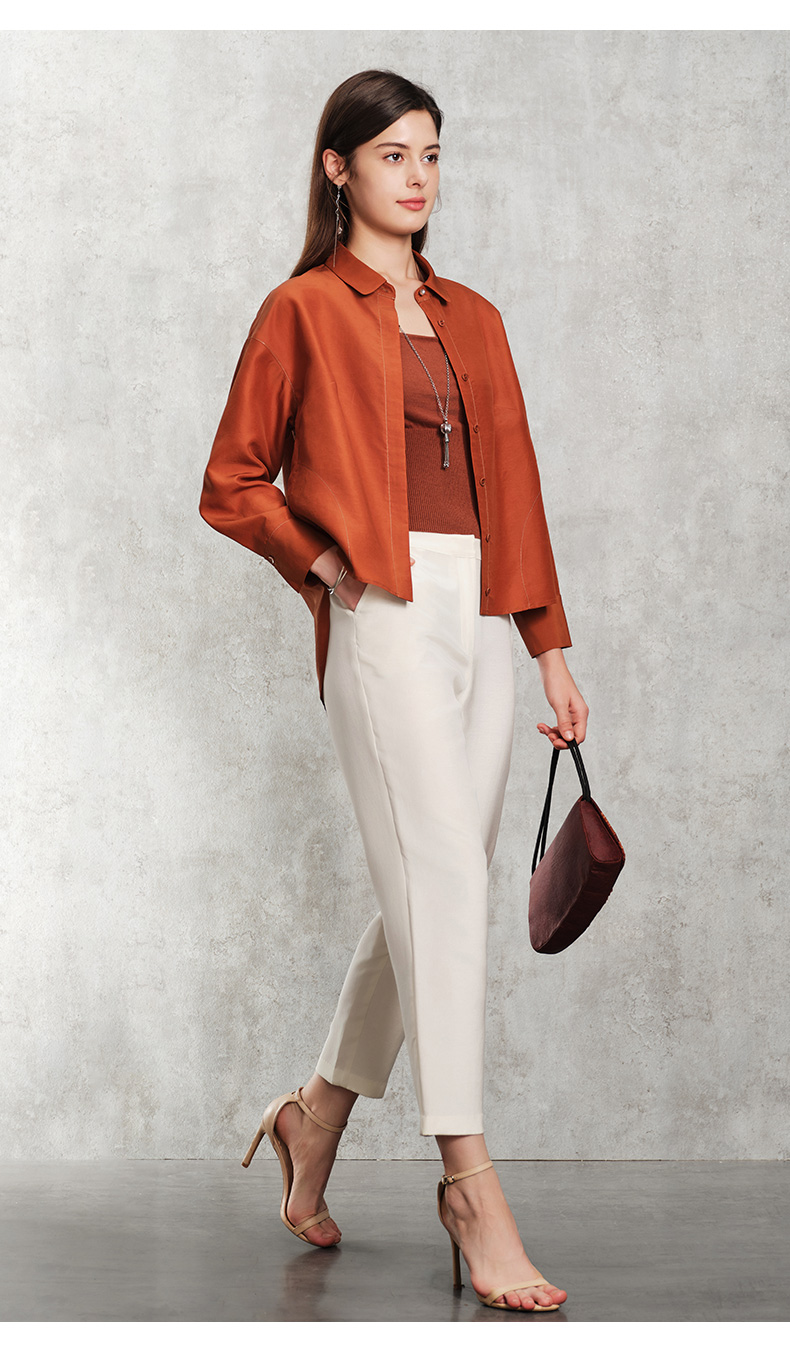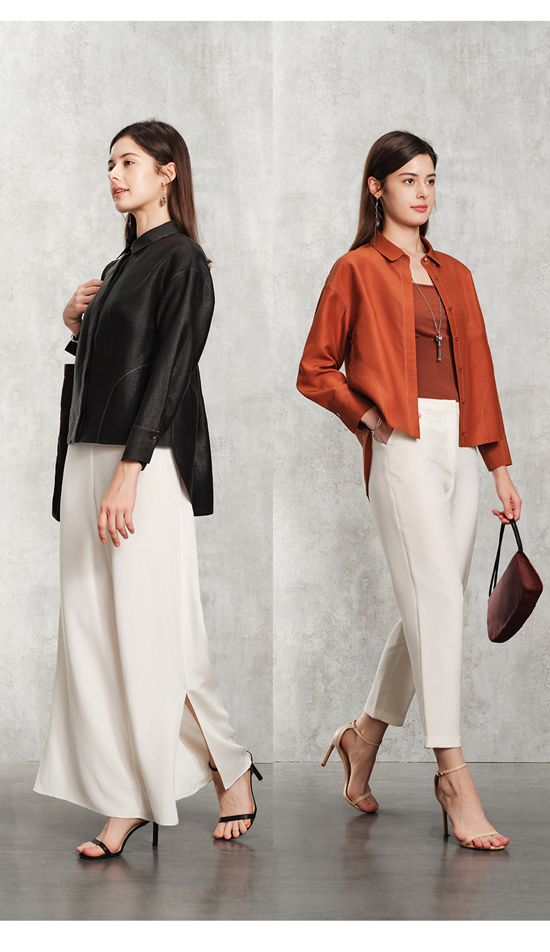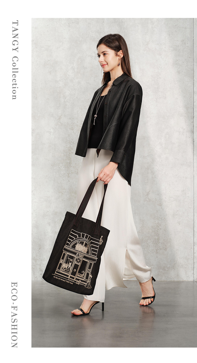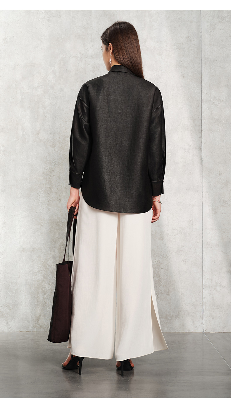 TANGY Collection天意精品2024春新品纯天然植物染宽松时尚落肩袖莨绸香云纱衬衫 L241015