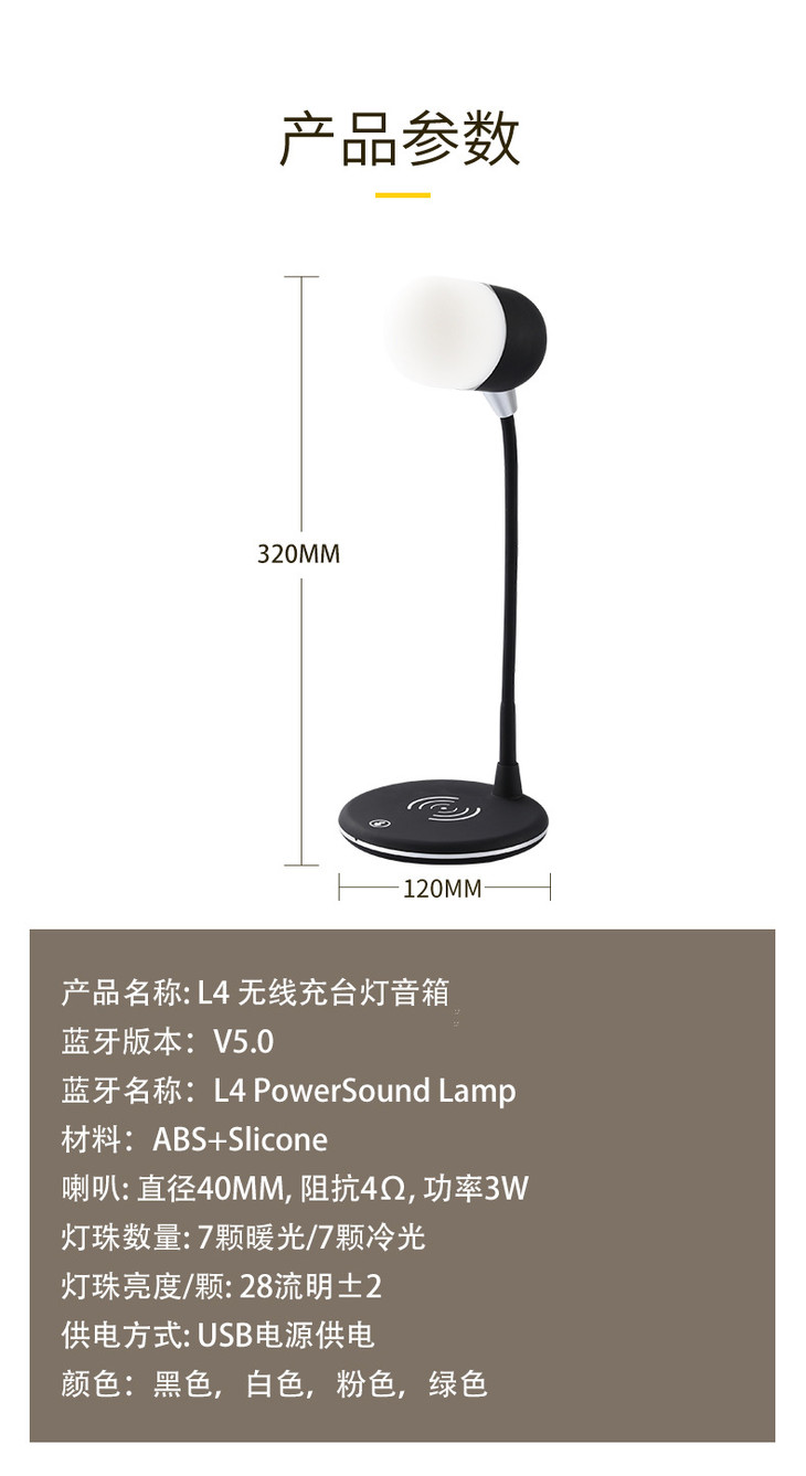 L4 台灯三合一无线充电器蓝牙音箱重低音桌面LED折叠USB小夜灯创意三合一蓝牙音箱JJ20926