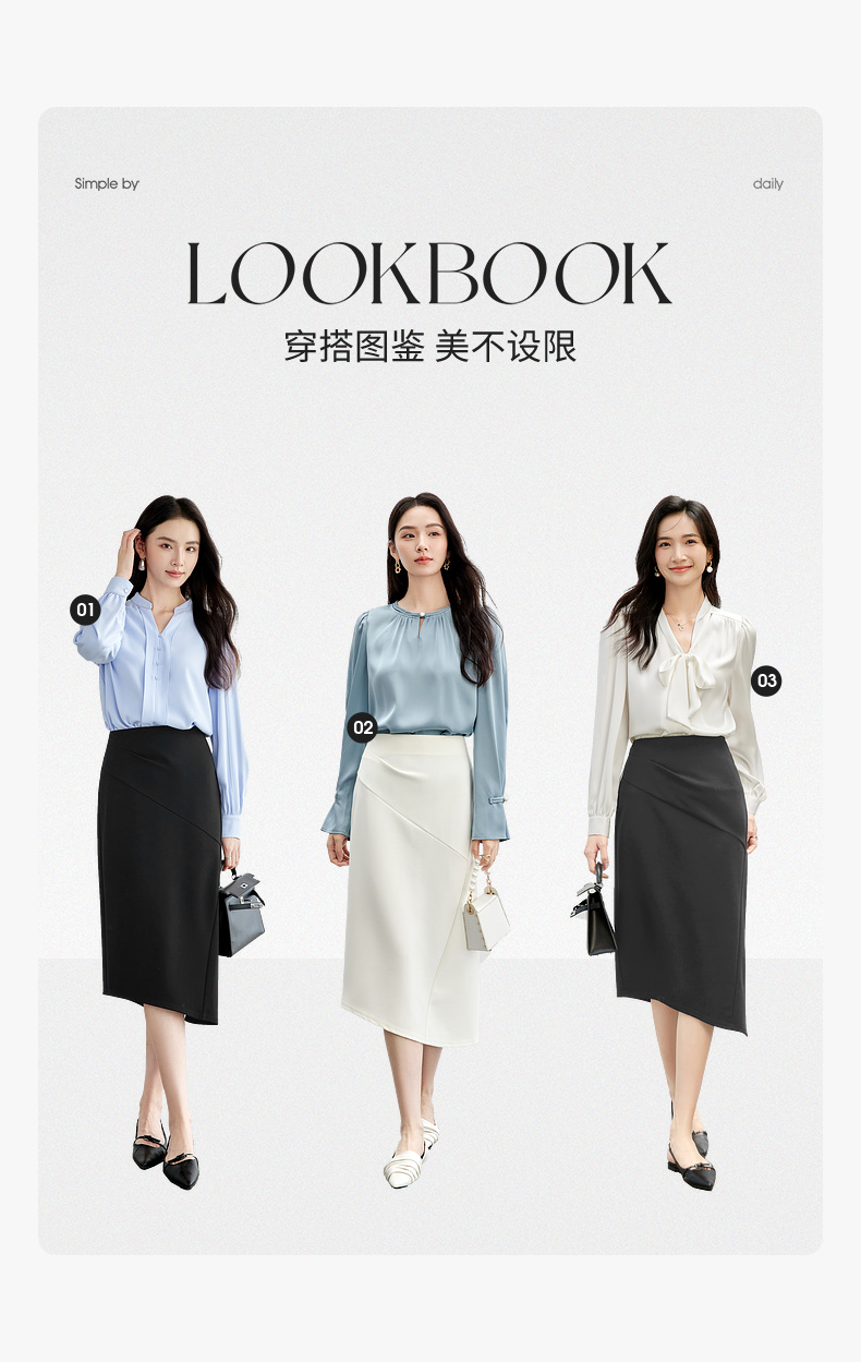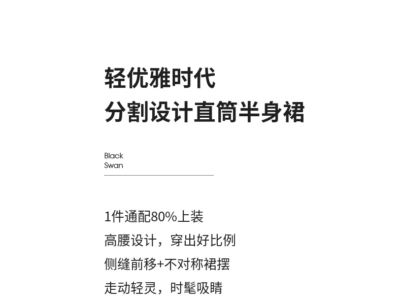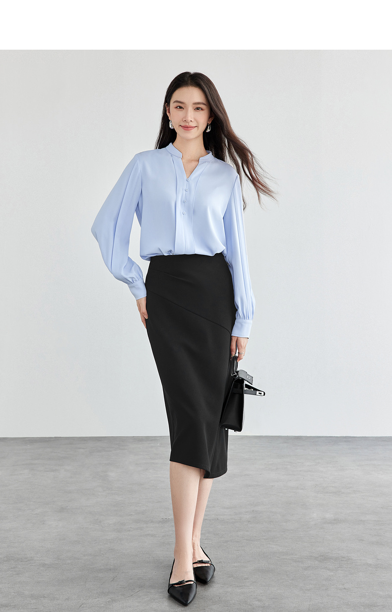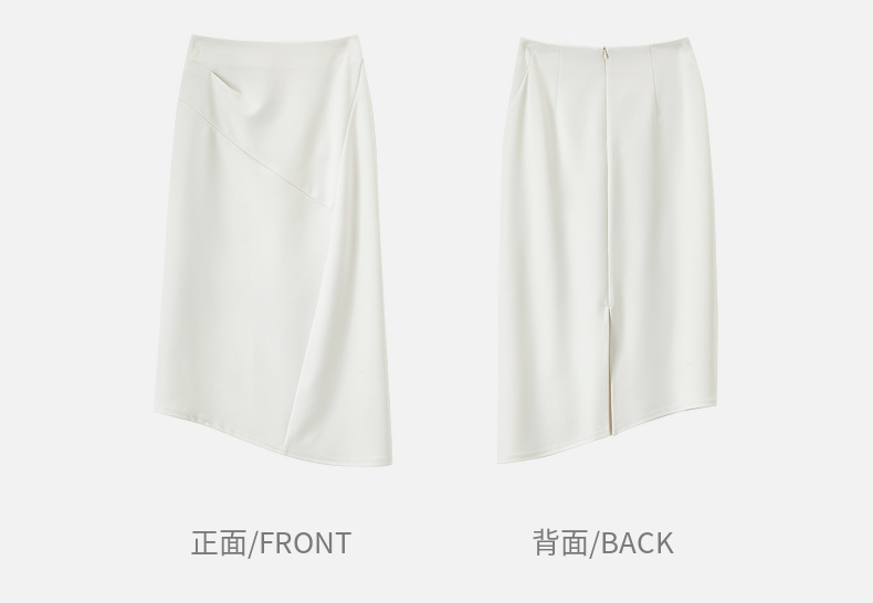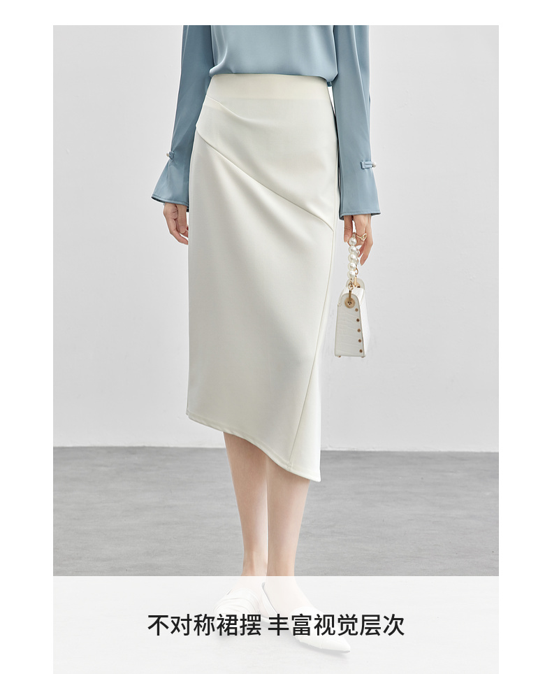 【内购】优雅通勤前片分割设计高腰直筒裙不对称裙摆斜缝前移弹力半身裙-151Q57464