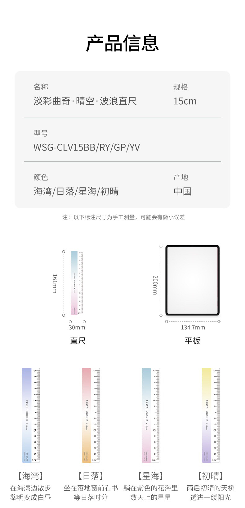 国誉淡彩曲奇·晴空波浪直尺/15CM/(颜色随机)