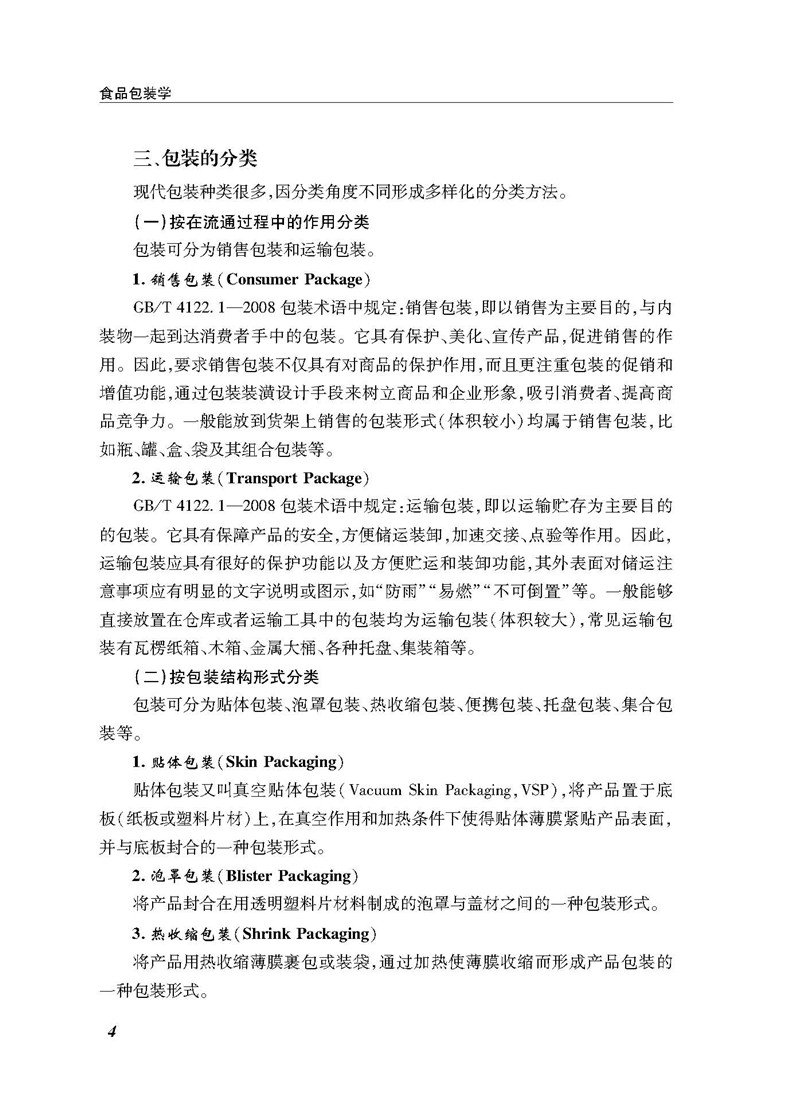 本书内容比较丰富,贴近生产实际,适用于食品科学与工程专业或相近专业的大学本科、专科学生作为教材使用,也可供有关研究人员、工程技术人员或包装工程专业的学生或从业人员用作参考。
