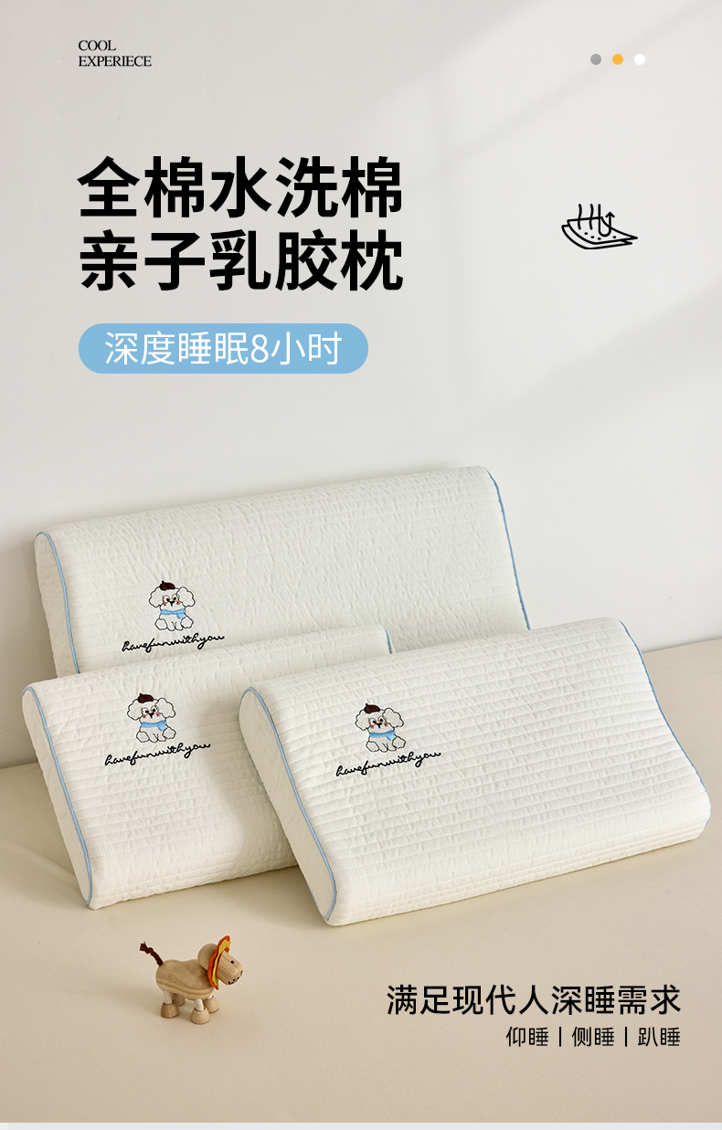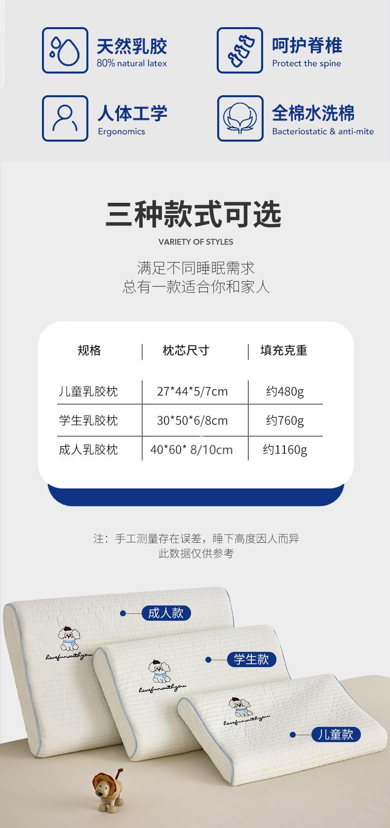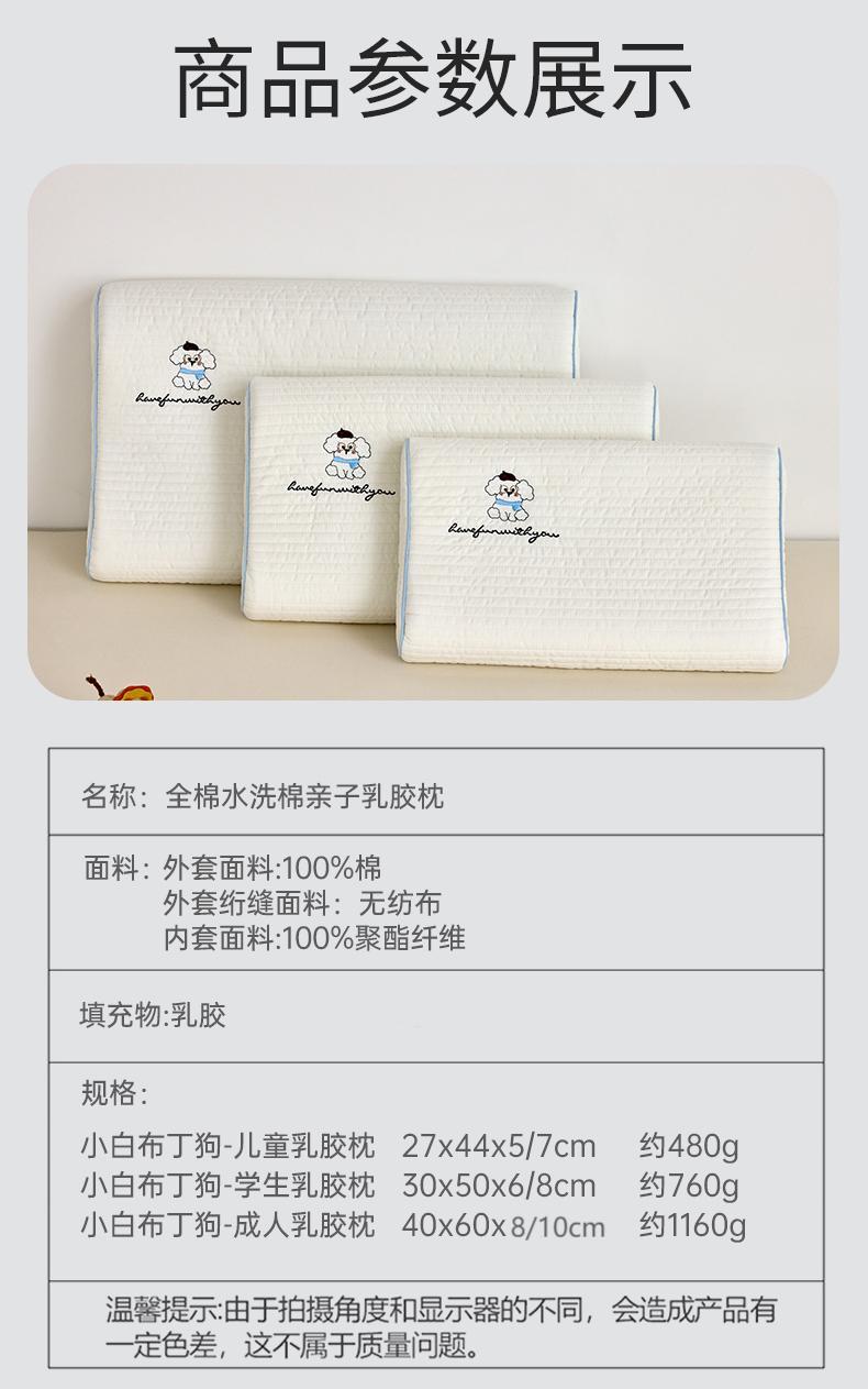 【品牌直发】小象咘叮 全棉水洗棉亲子乳胶枕 天然乳胶儿童枕头宿舍学生枕芯成人乳胶枕