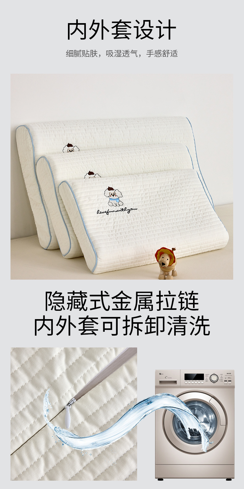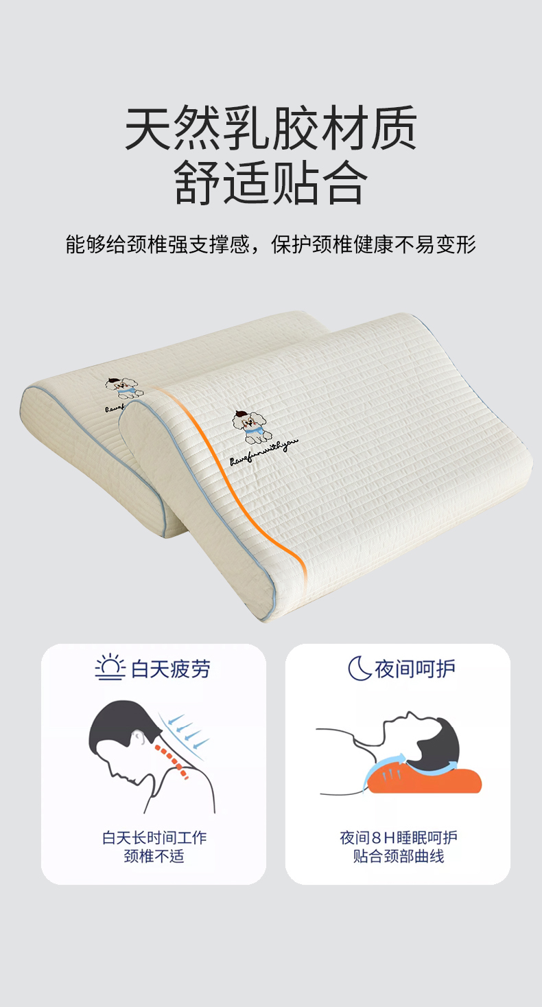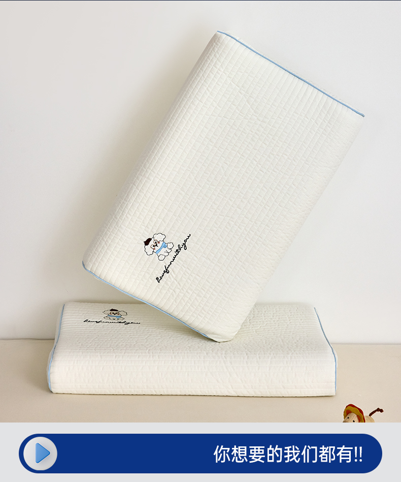 【品牌直发】小象咘叮 全棉水洗棉亲子乳胶枕 天然乳胶儿童枕头宿舍学生枕芯成人乳胶枕