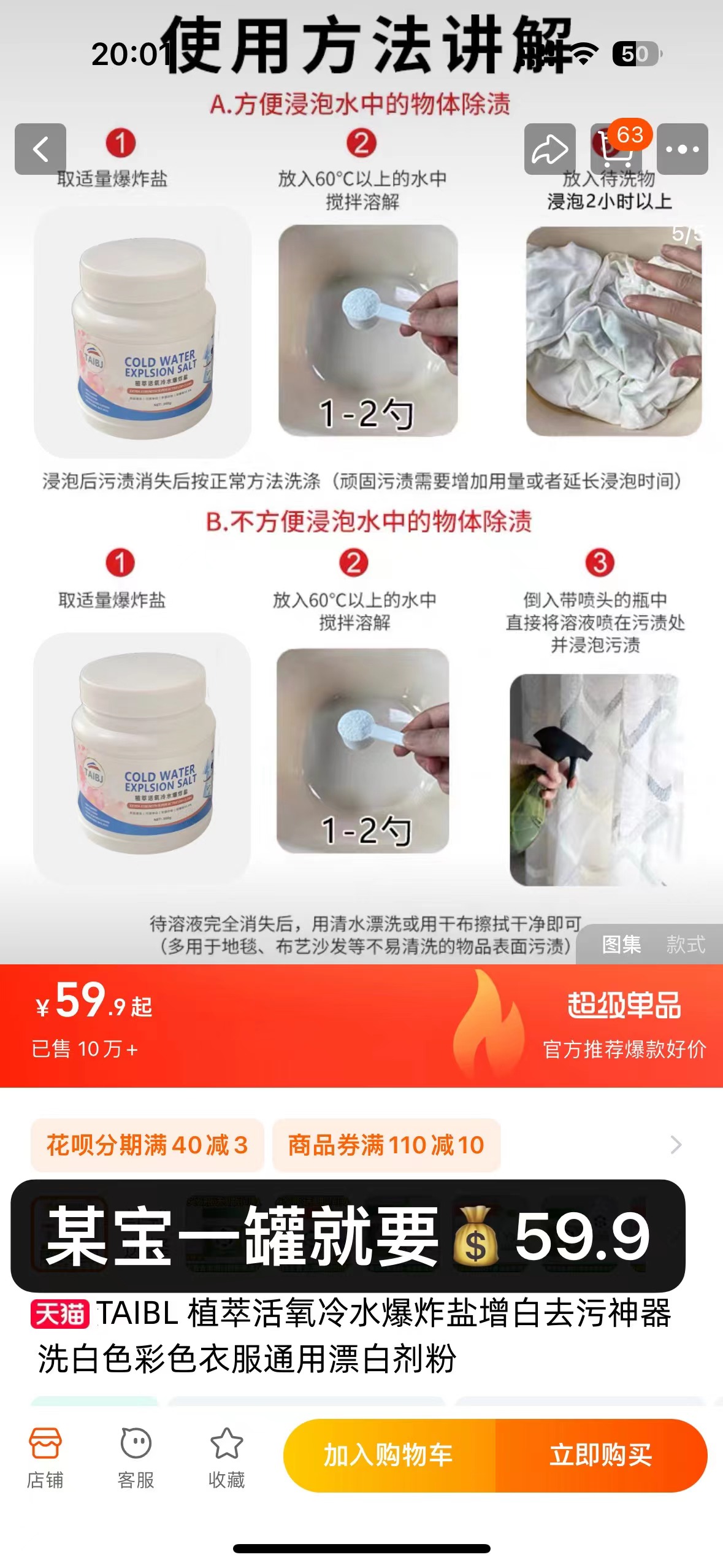 【强效去污】TAlBJ 植萃活氧冷水爆炸盐3瓶