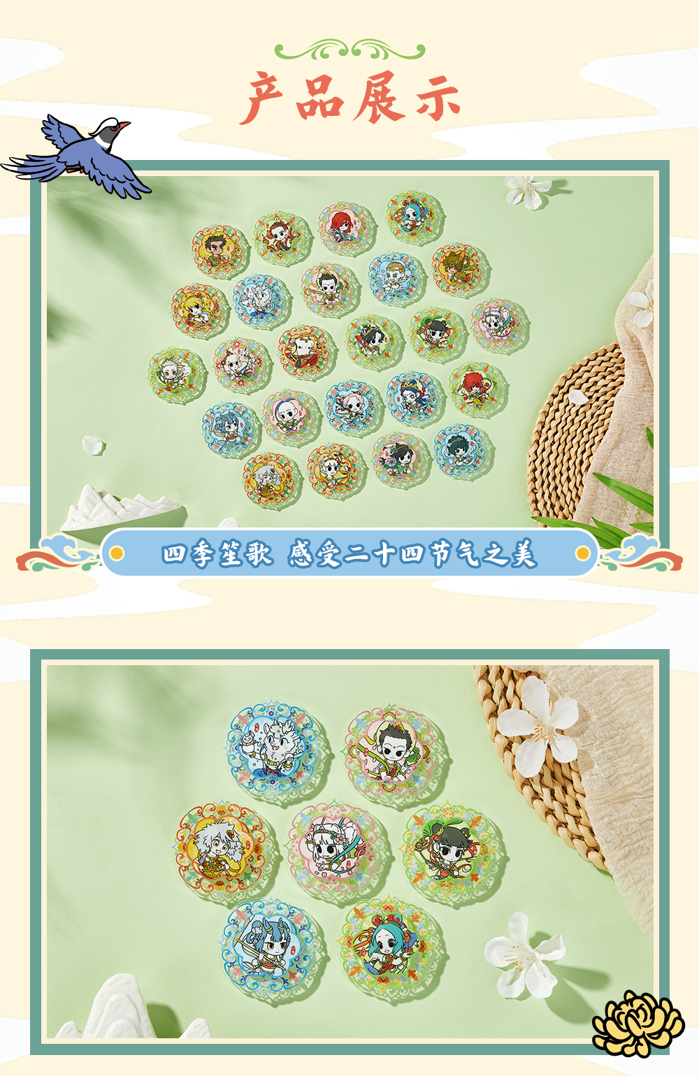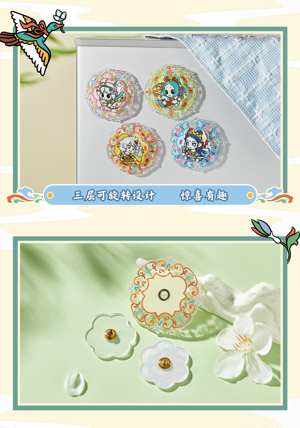《非人哉官方店》四季笙歌亚克力旋转冰箱贴盲盒Q版动漫周边装饰磁贴