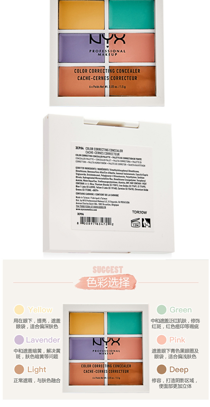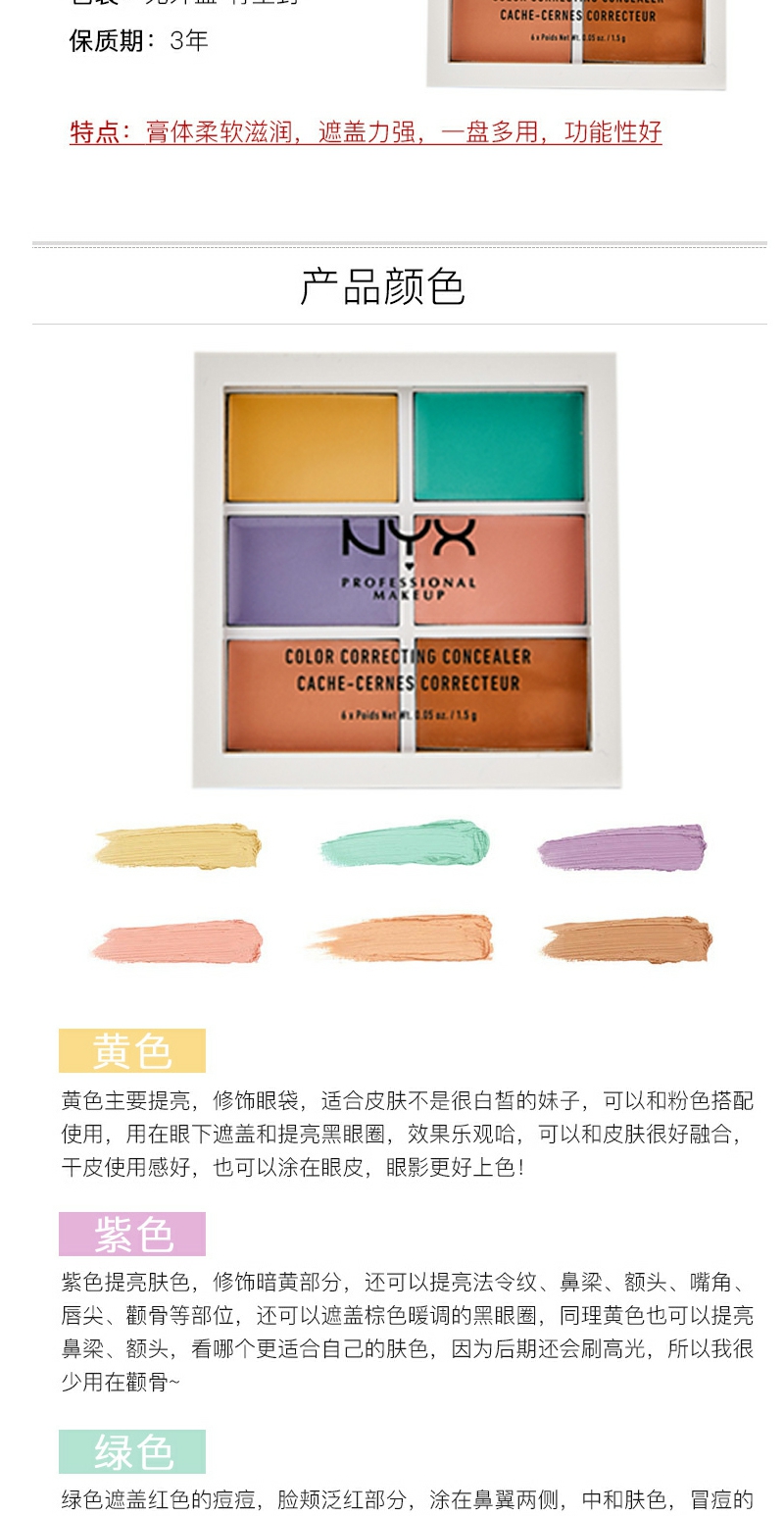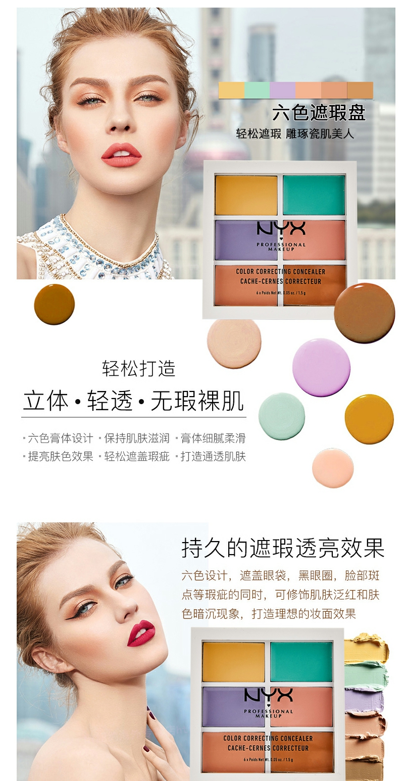 【YZ】NYX彩色6色遮瑕盘修容阴影遮斑痘黑眼圈遮瑕膏提亮六色