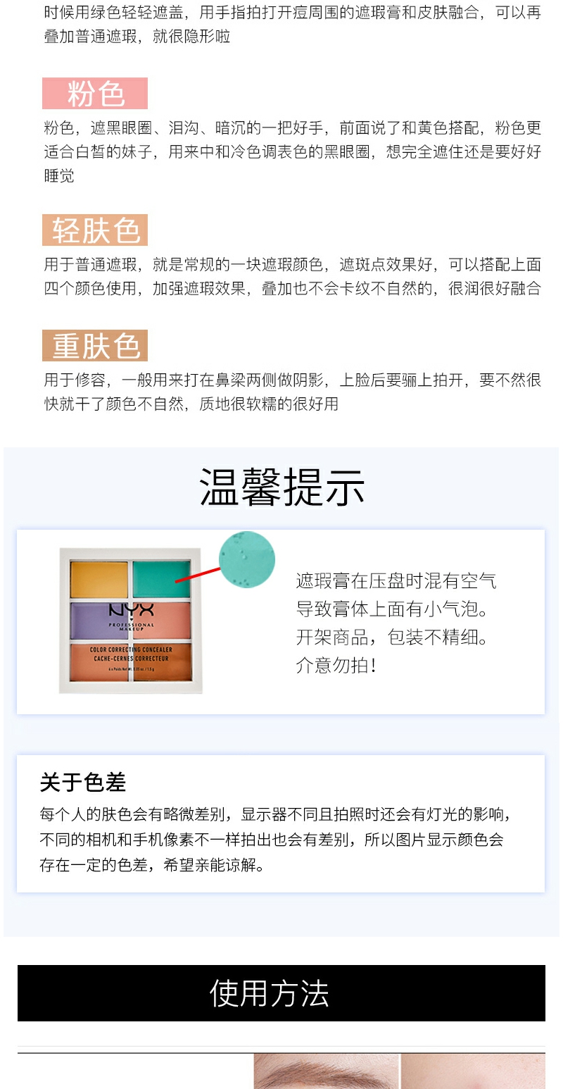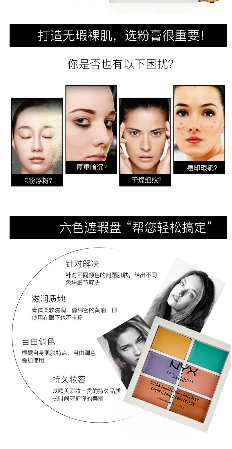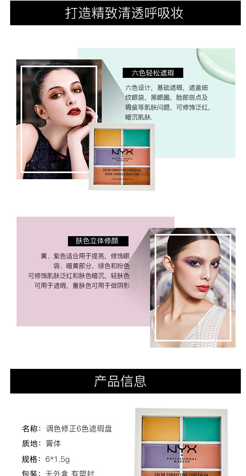 【YZ】NYX彩色6色遮瑕盘修容阴影遮斑痘黑眼圈遮瑕膏提亮六色