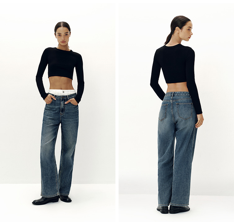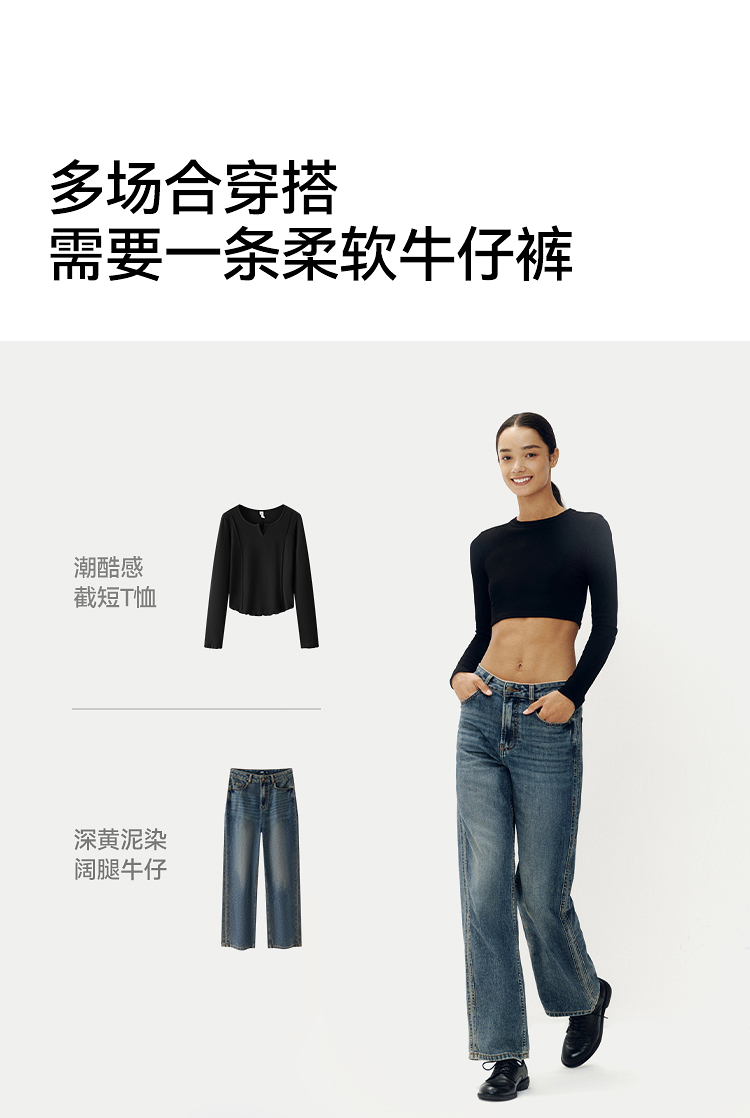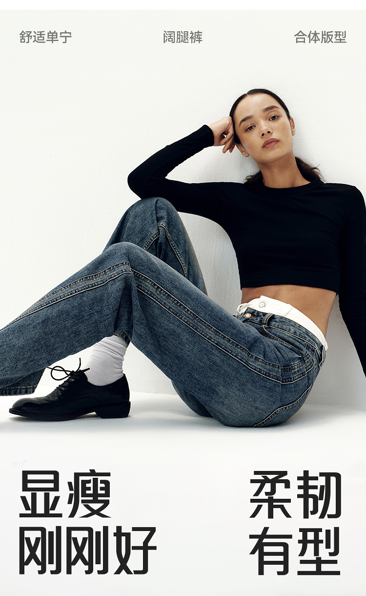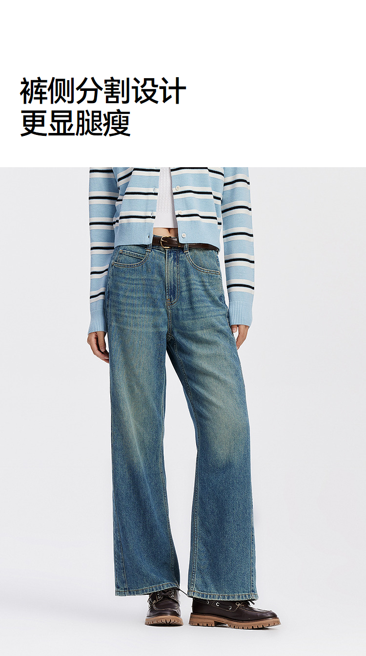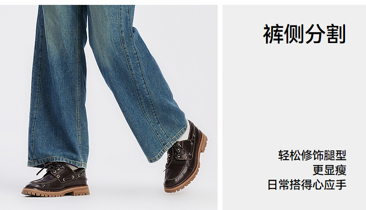 森柔牛仔|商场同款森马牛仔裤女分割阔腿裤显瘦2025新款秋季长裤
