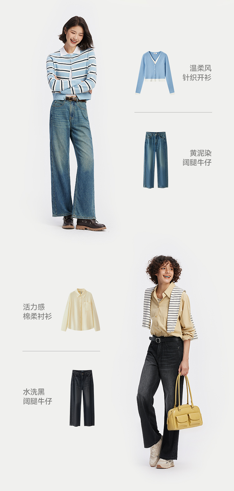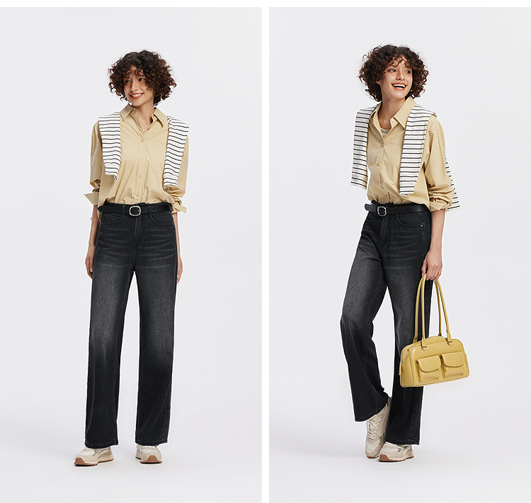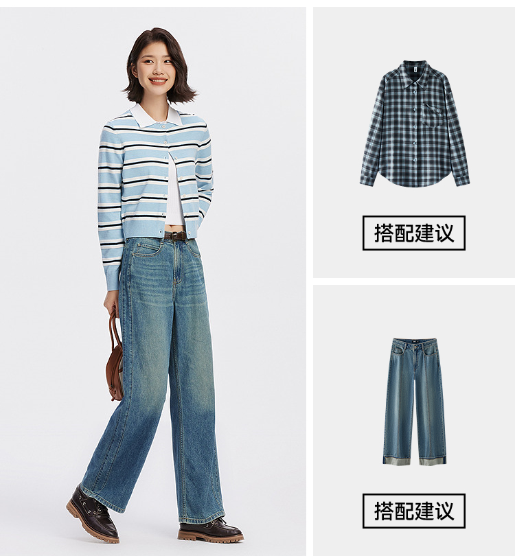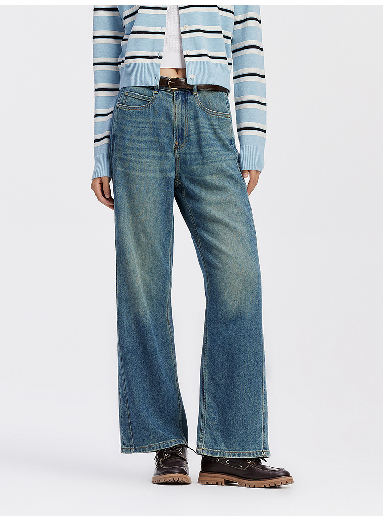 森柔牛仔|商场同款森马牛仔裤女分割阔腿裤显瘦2025新款秋季长裤