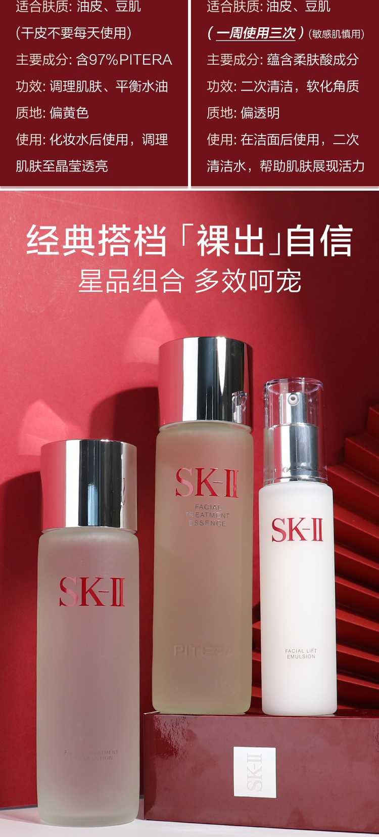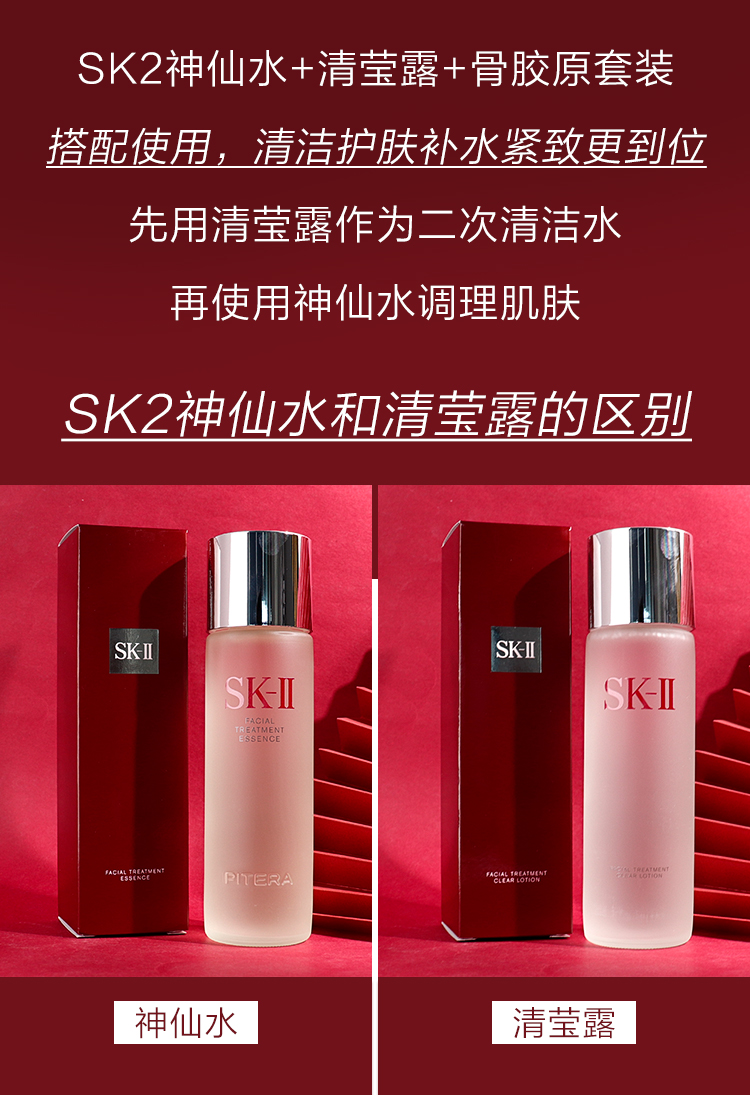 女神驾到【保税仓直发】SK-II多方位三件套神仙水230ml清莹露230ml骨胶原乳液100ml