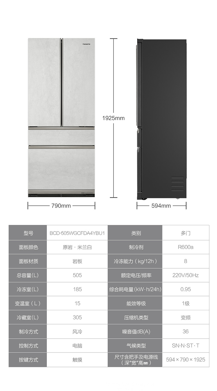 卡萨帝(Casarte)冰箱 BCD-505WGCFDA4YBU1