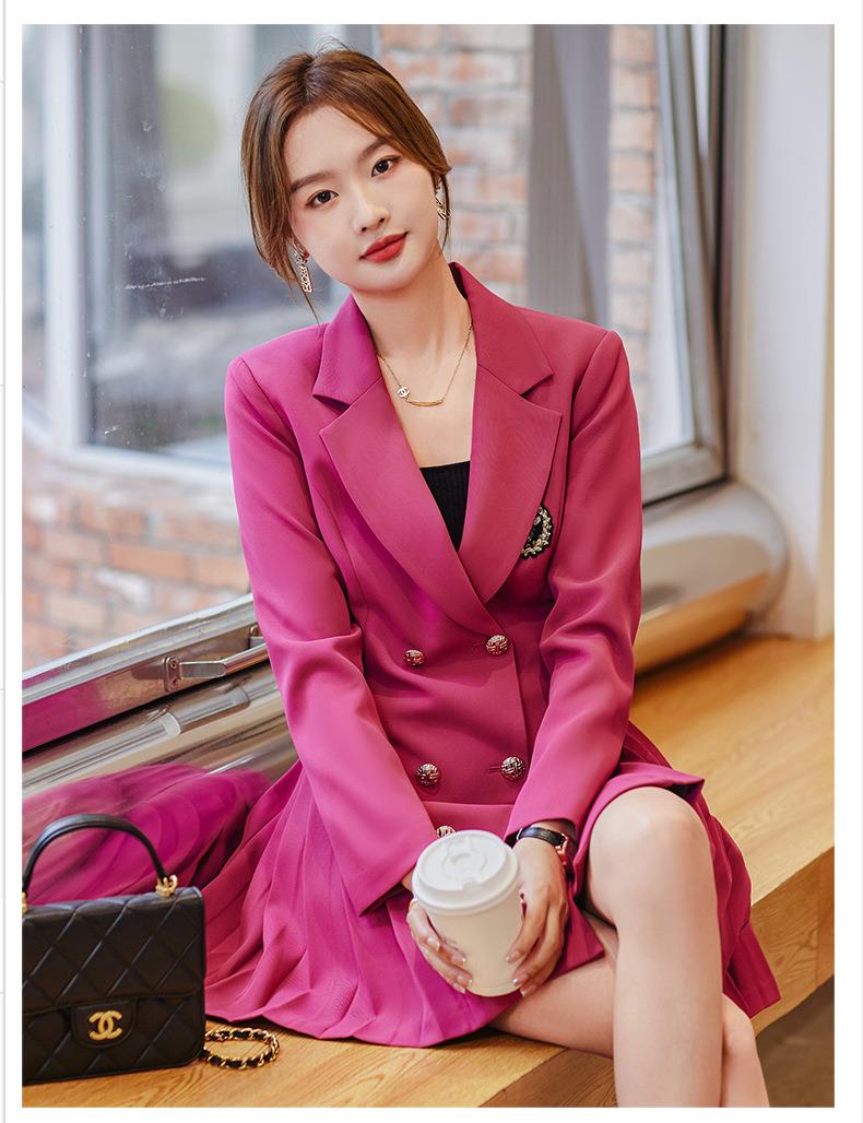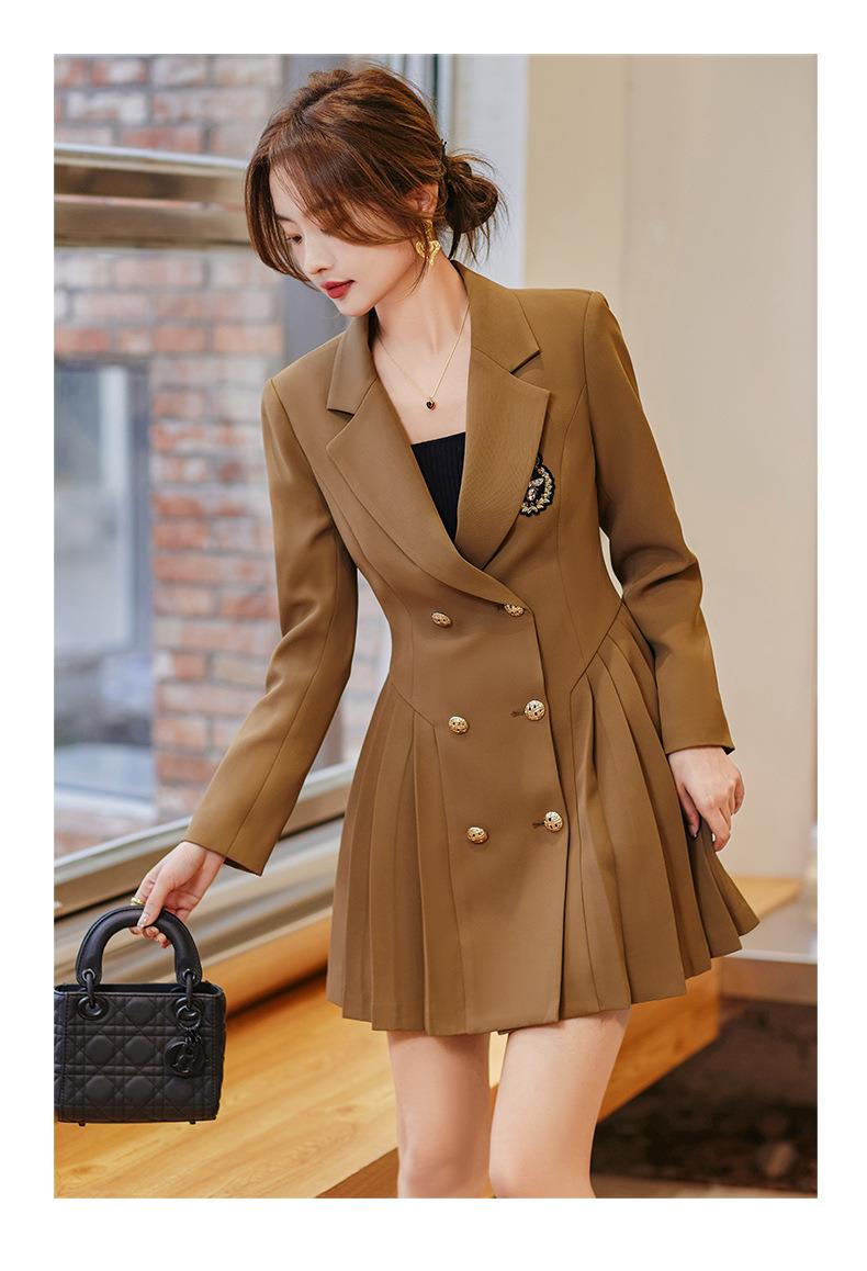 娜璐多 温柔洋气西装连衣裙女2023秋名媛气质高端法式甜美御姐新款百褶裙