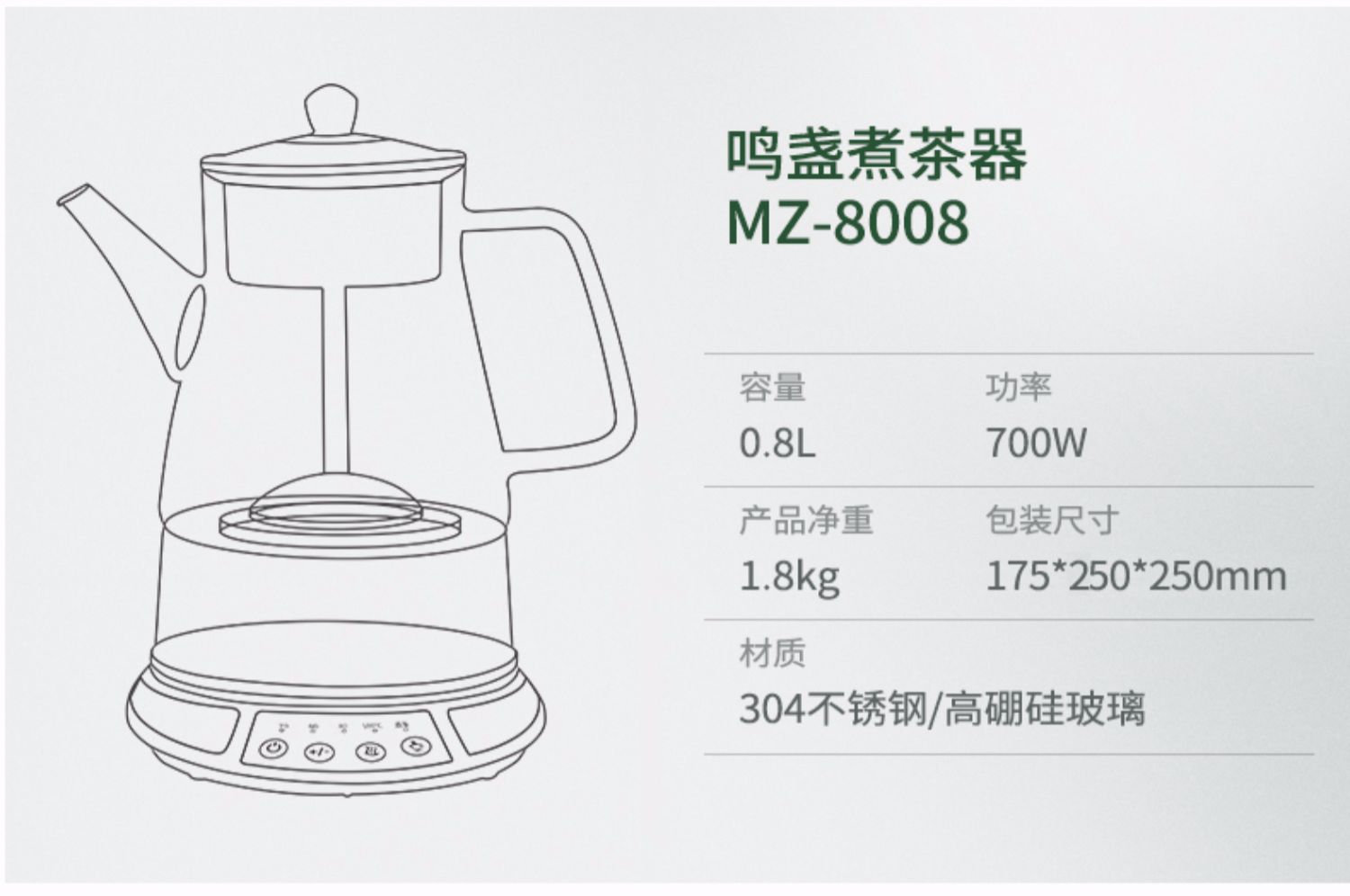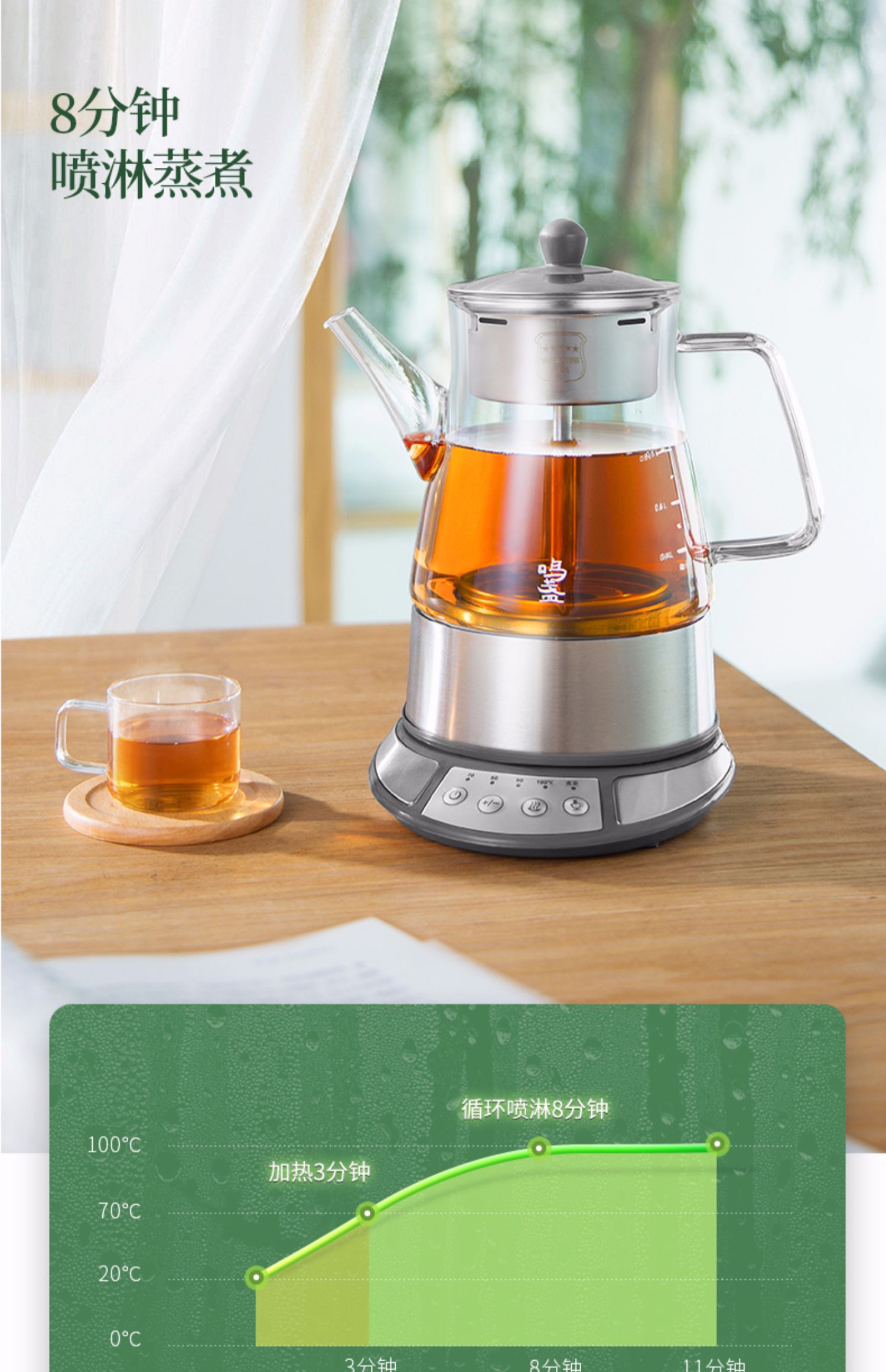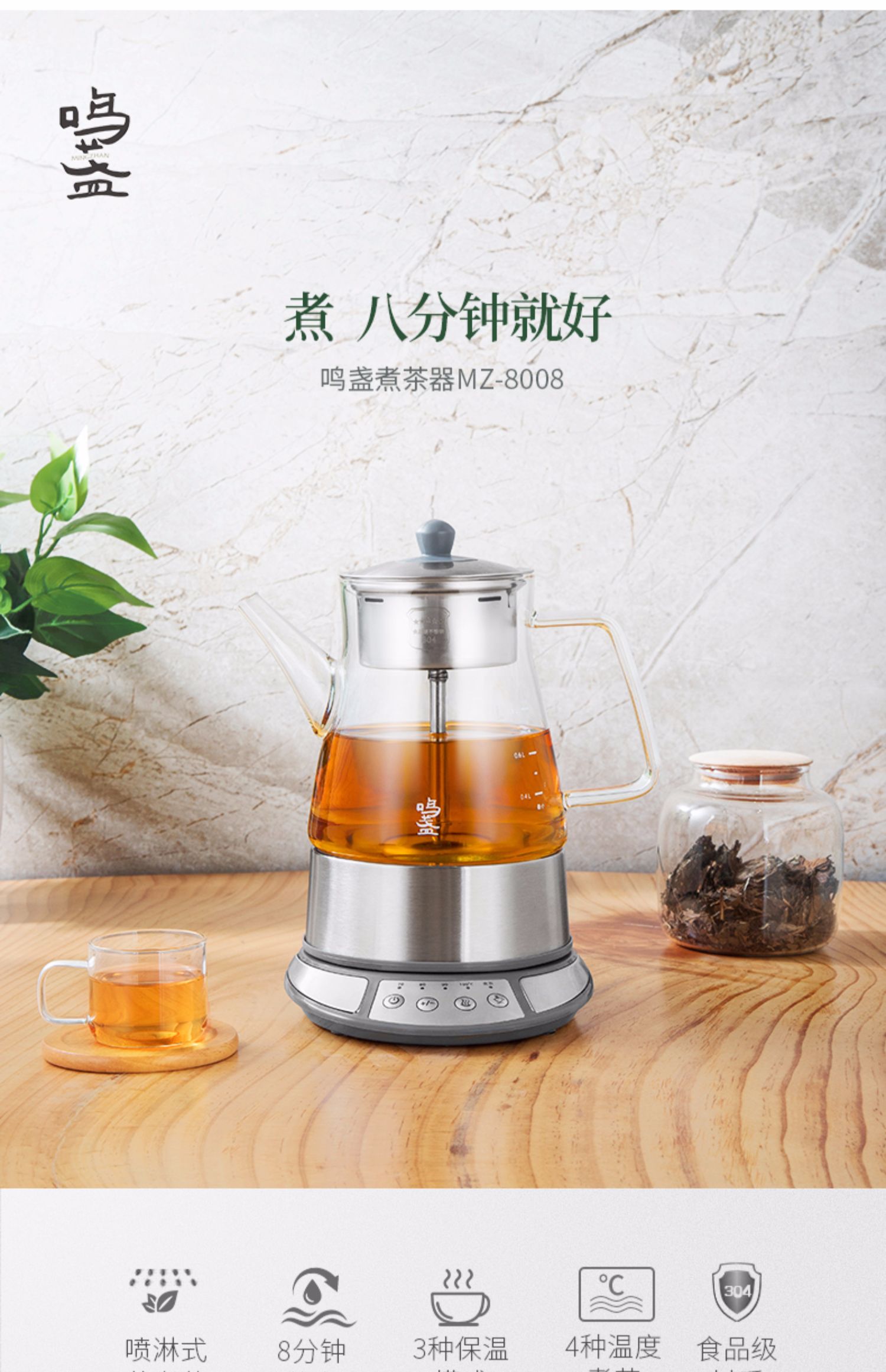 鸣盏喷淋煮茶器MZ-8008【伊藤优选301692】