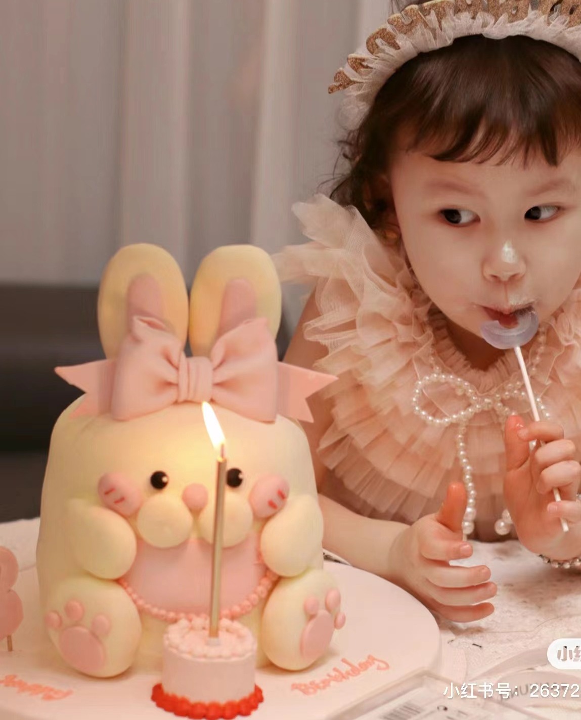【臻品系列】---半翻糖双层胚立体【蝴蝶结可爱兔】