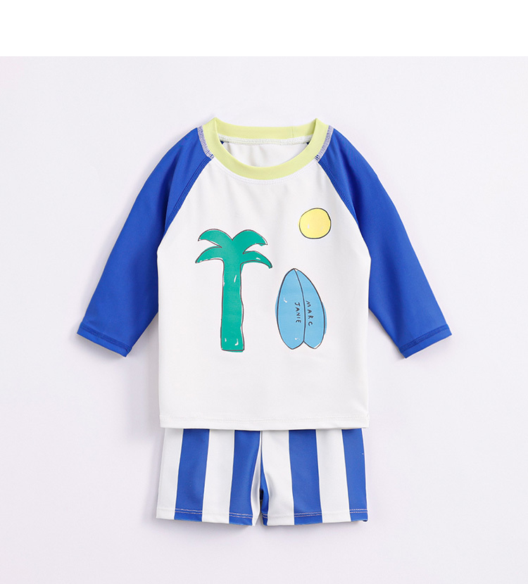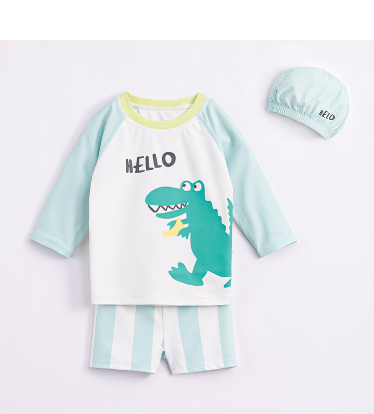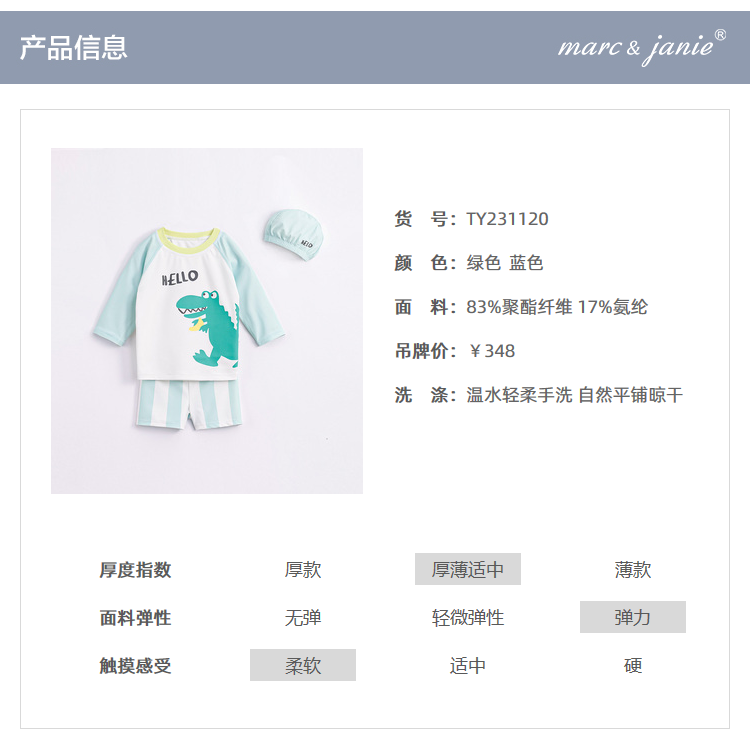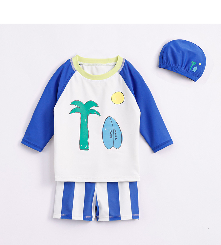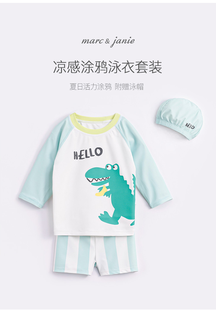 马克珍妮夏装新款 男童凉感防晒泳衣泳帽 儿童舒适游泳套装231120