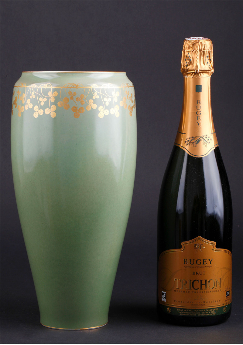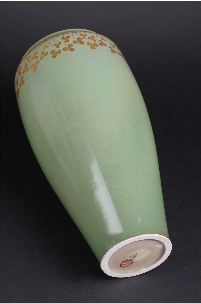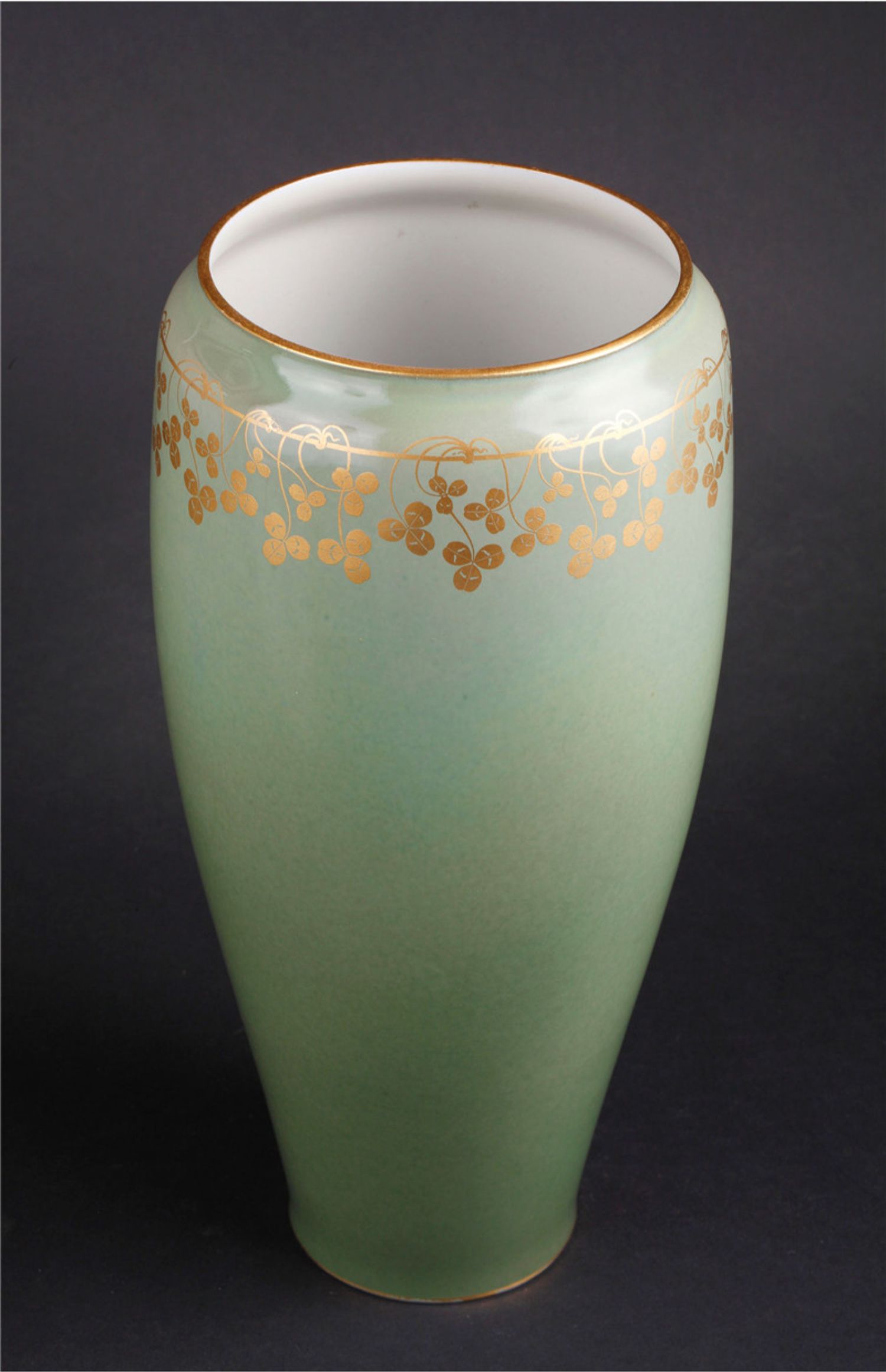 独角鹿西洋古董1905年法国塞弗尔瓷器豆绿釉色三叶草描金花瓶瓷瓶