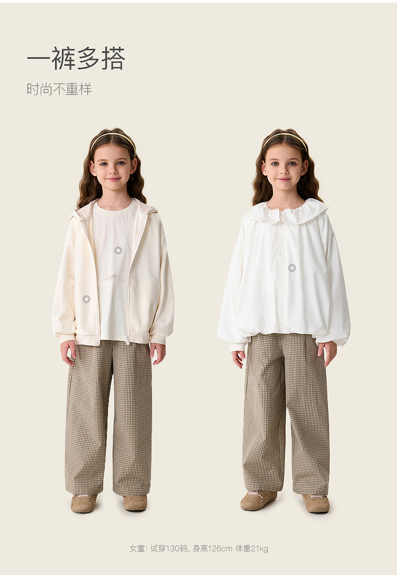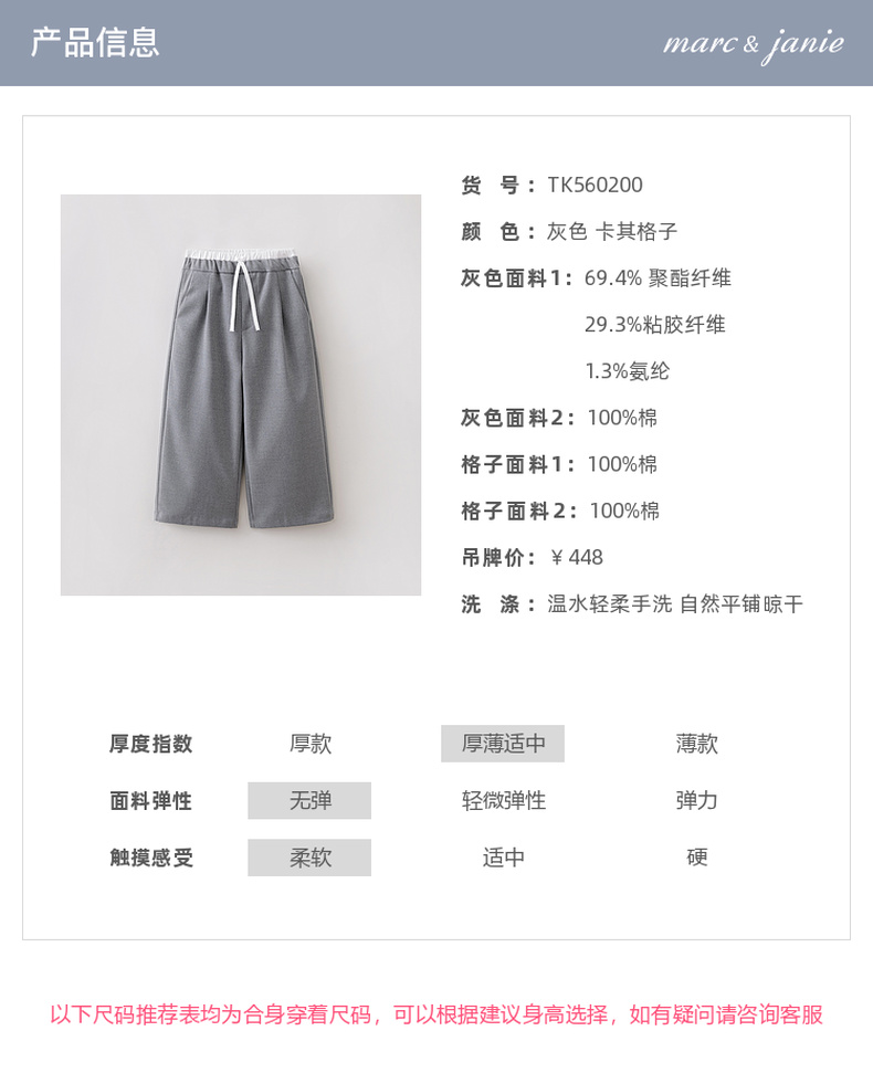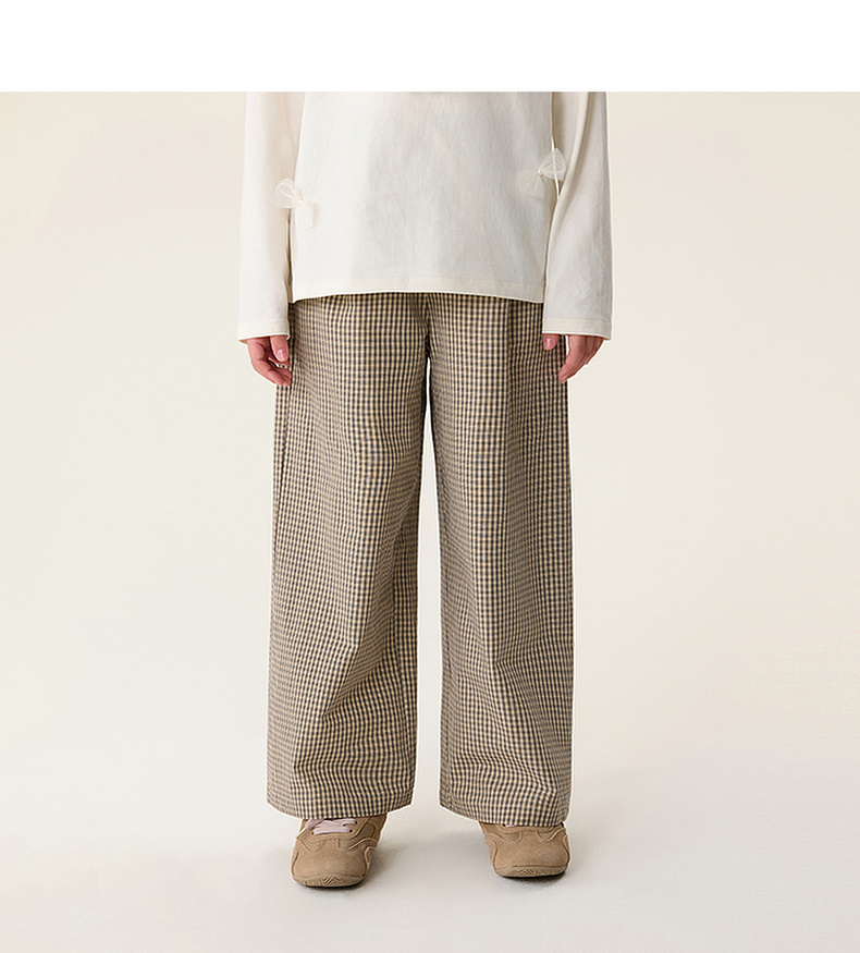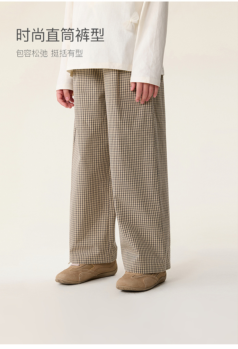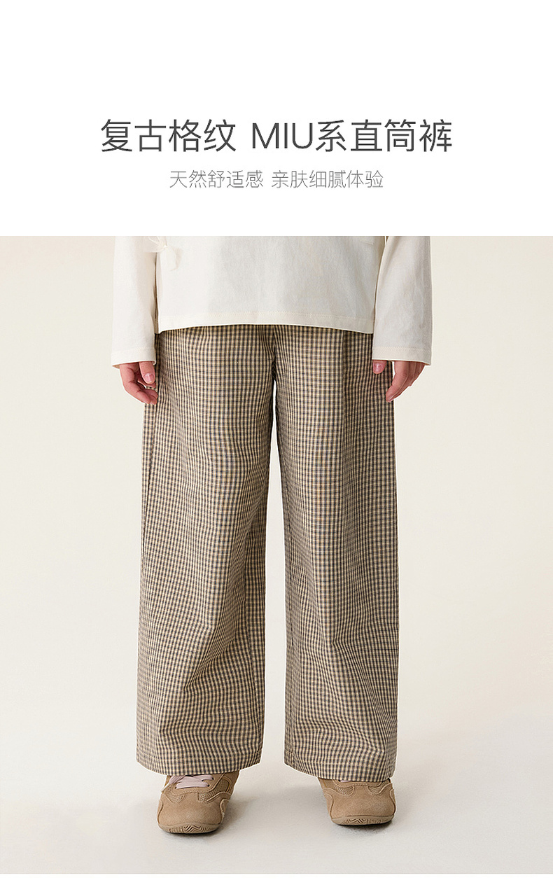 马克珍妮 复古格纹女童Miu系直筒裤2026年春装新款560200