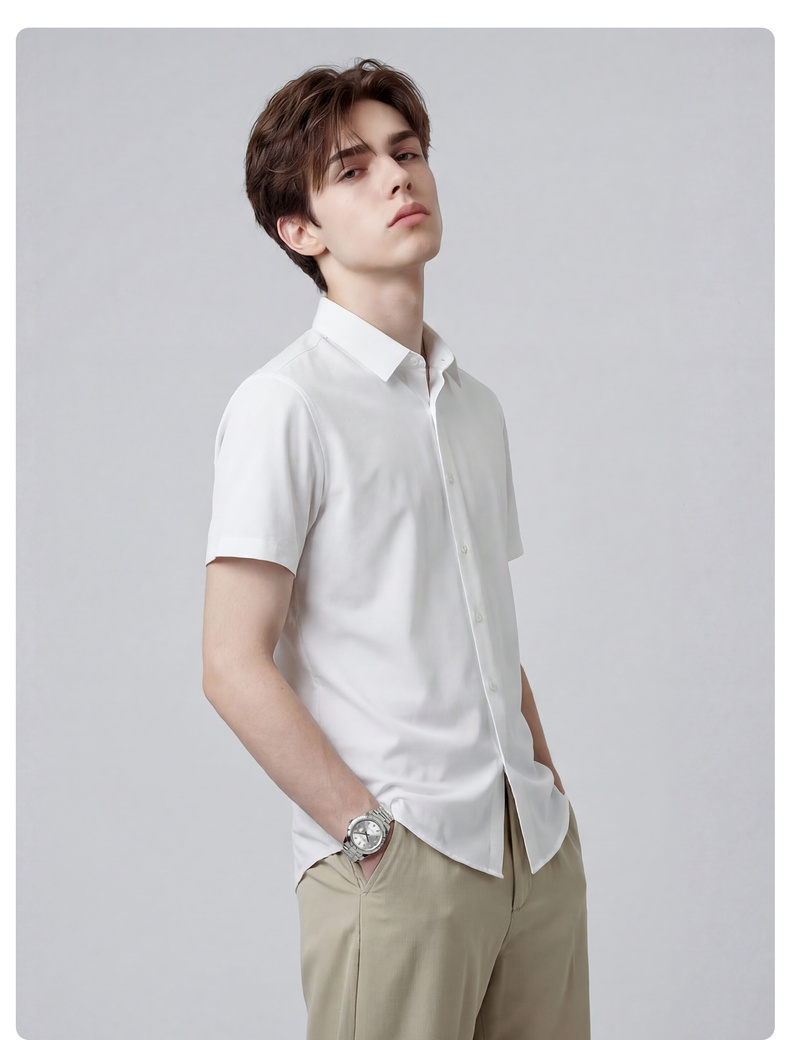 【含桑蚕丝】圣得西2026年夏季翻领衬衫商务男士舒弹自在简约短袖