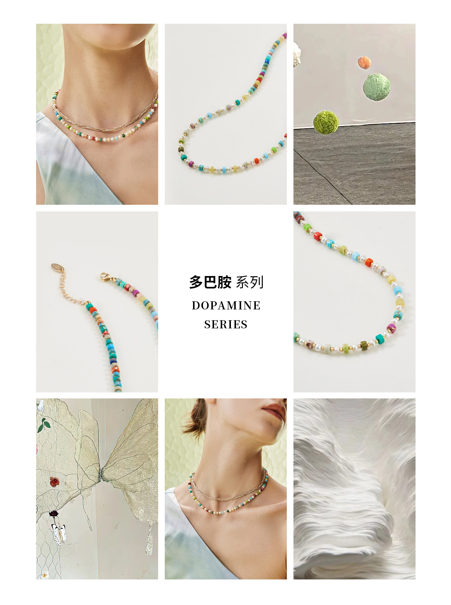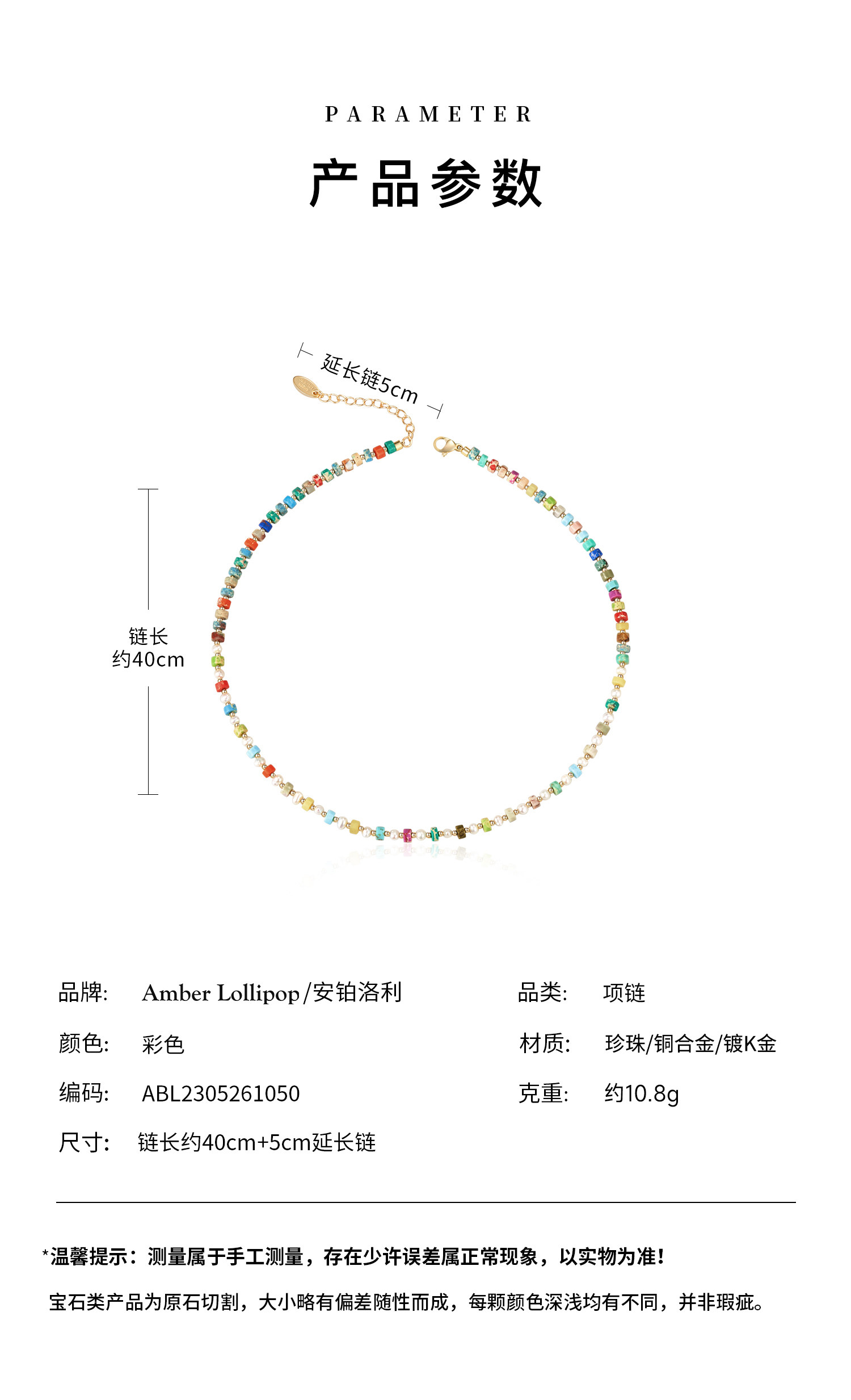 Amber Lollipop彩色串珠多巴胺天然石锁骨链/手链