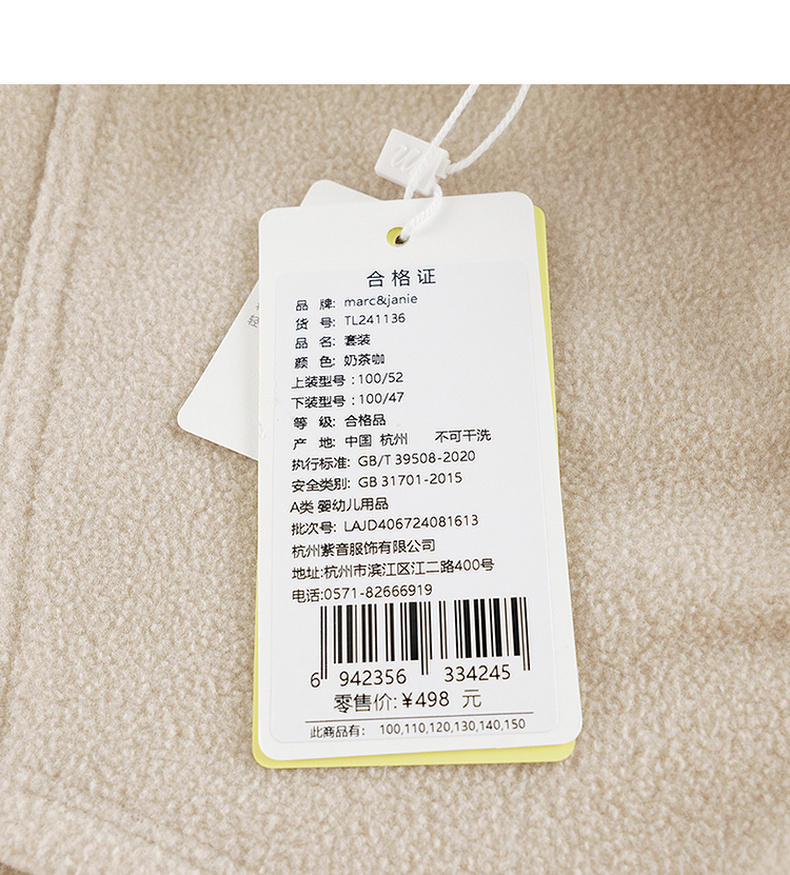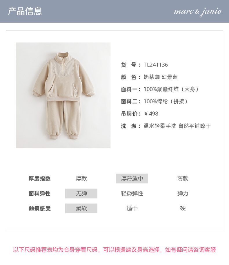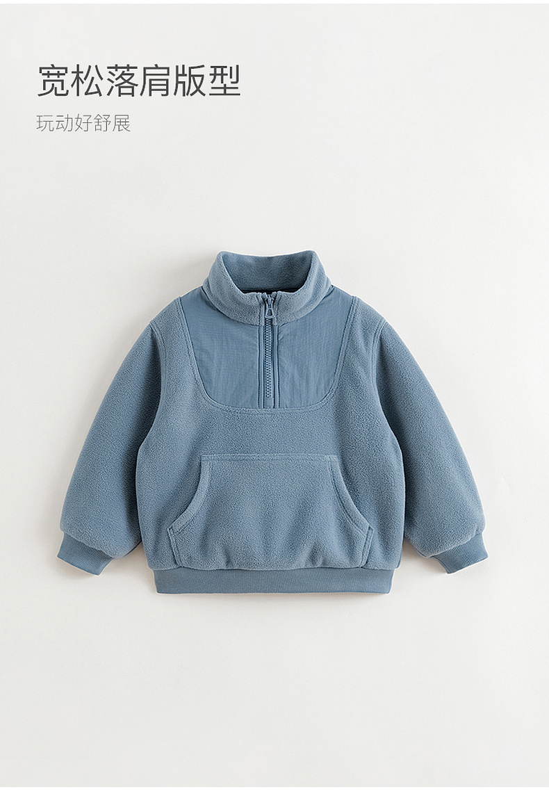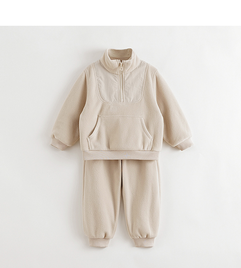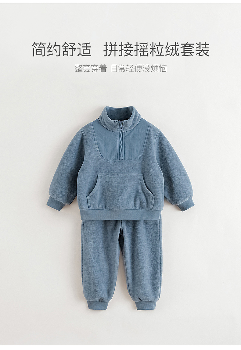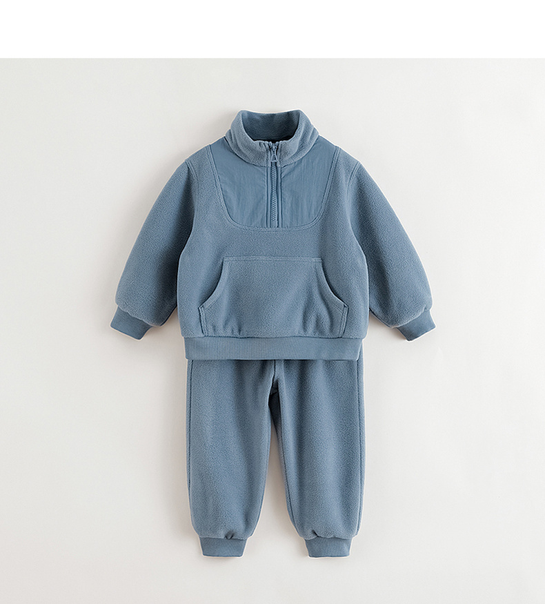 马克珍妮男女童大口袋拼接摇粒绒卫衣套装儿童套装秋冬新款241136