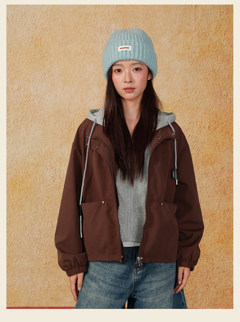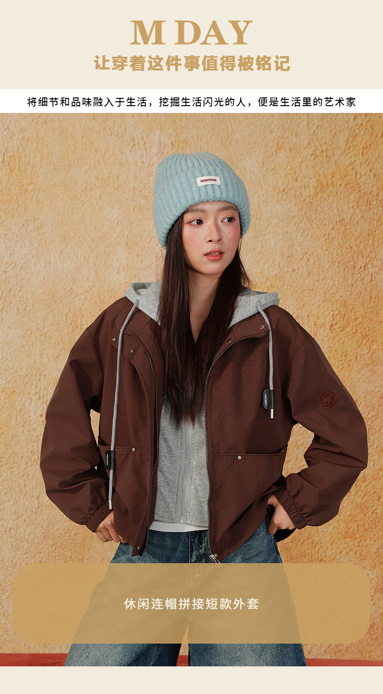 休闲连帽拼接短款外套-纪念日百货门店同款166552489