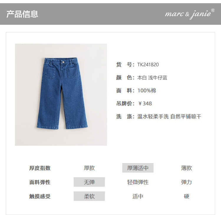 马克珍妮女童复古喇叭纯棉牛仔裤儿童裤子春秋款241820