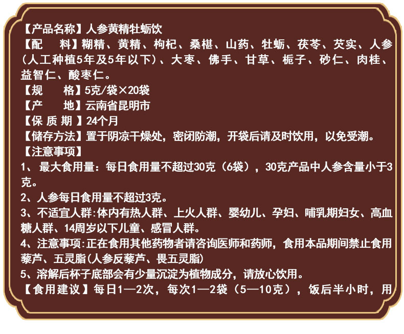 2、本产品为药食两用原料研制的健康食品,不可替代药物的治疗作用。
